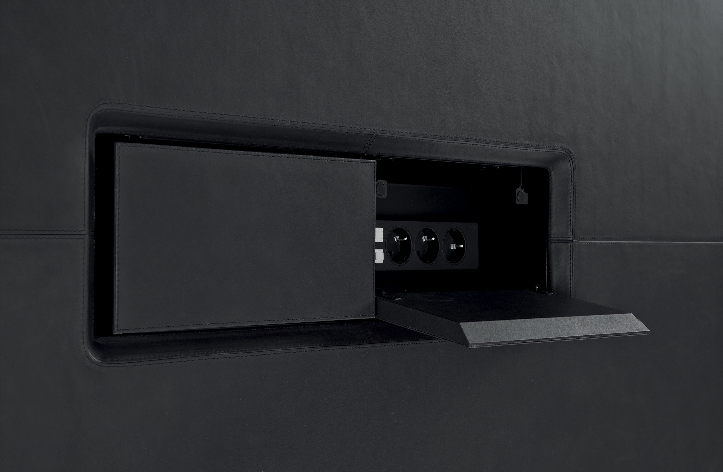 solid Ebony Macassar with matt finishing or covered in coordinated leather