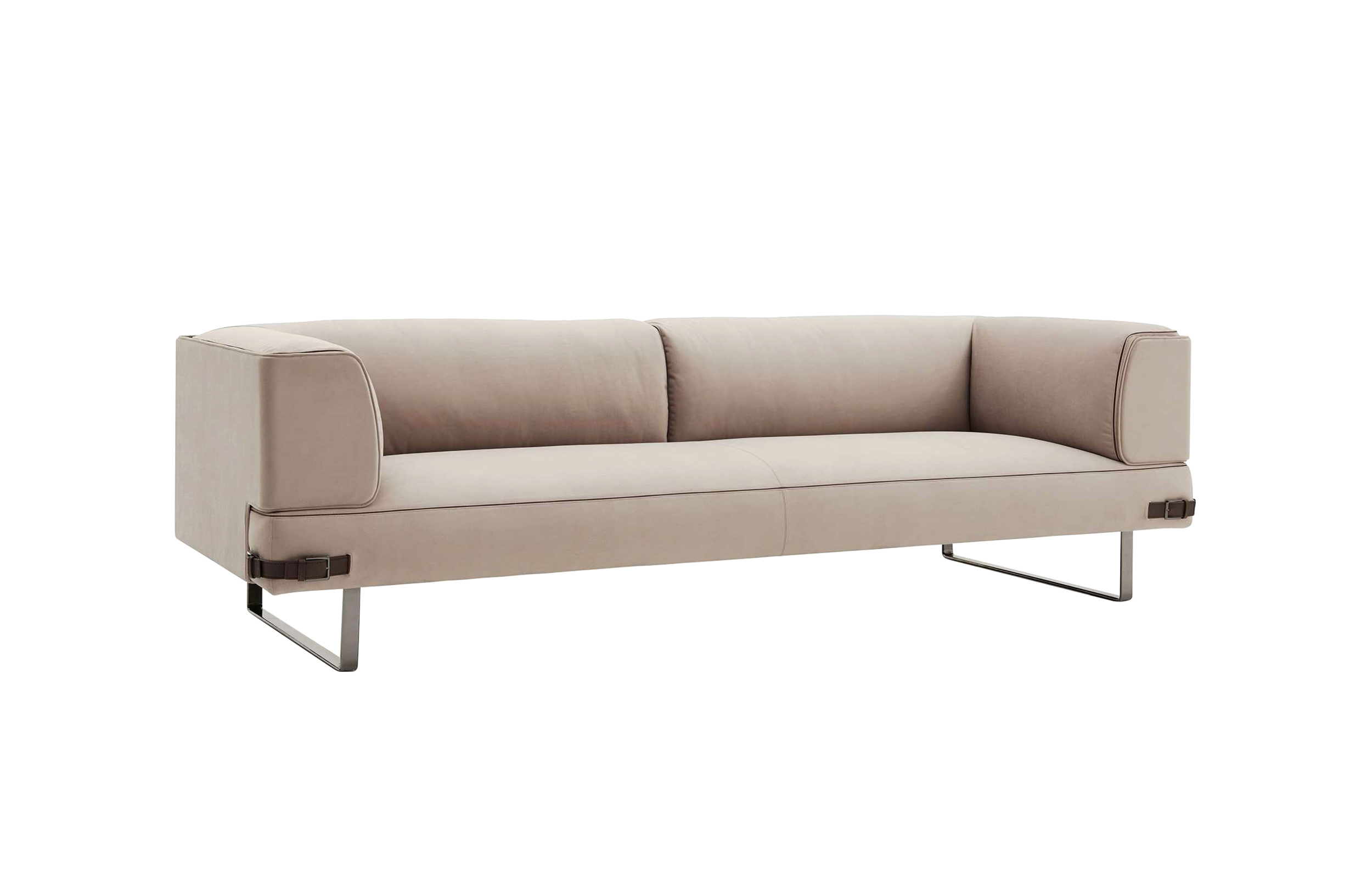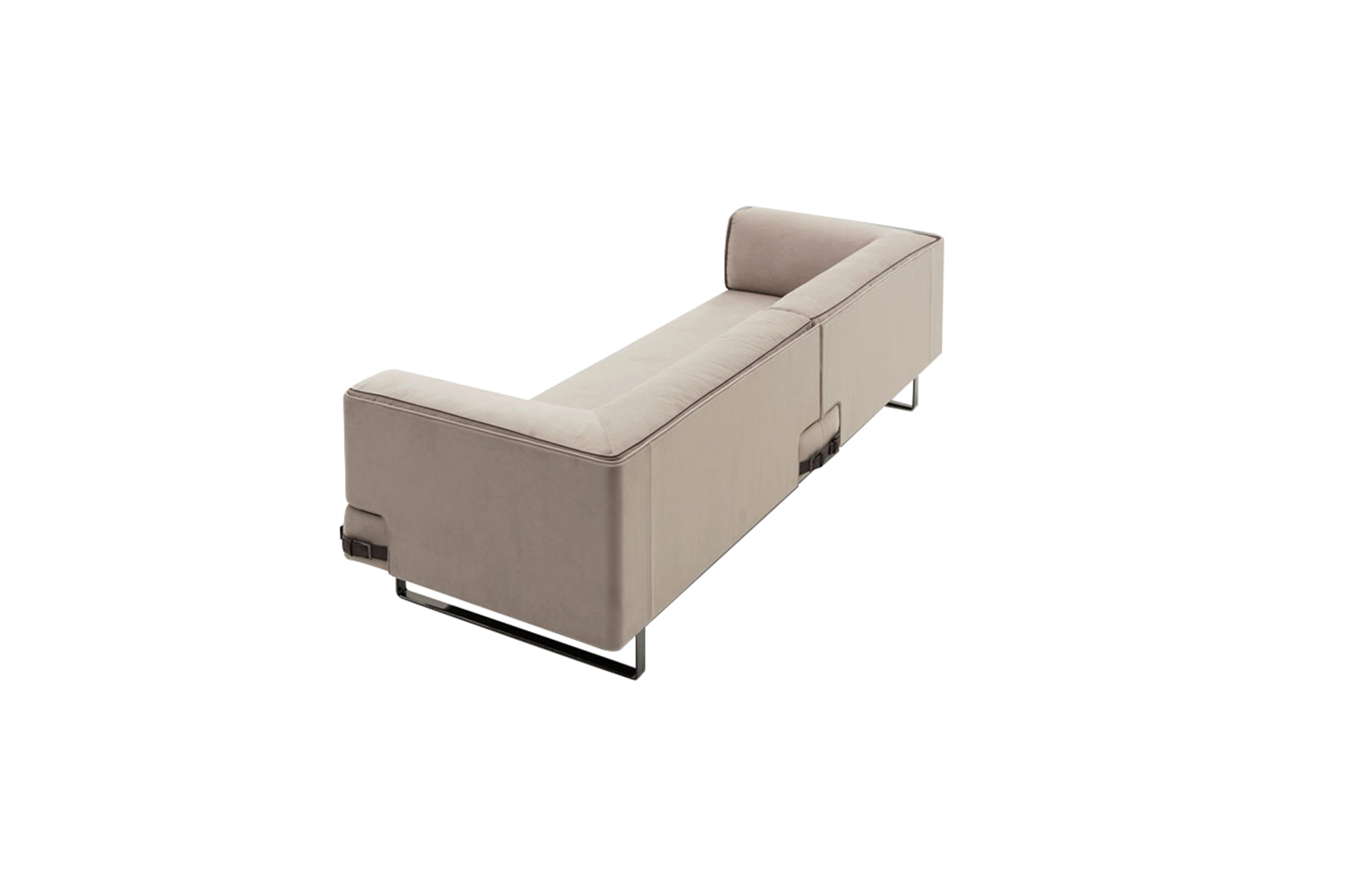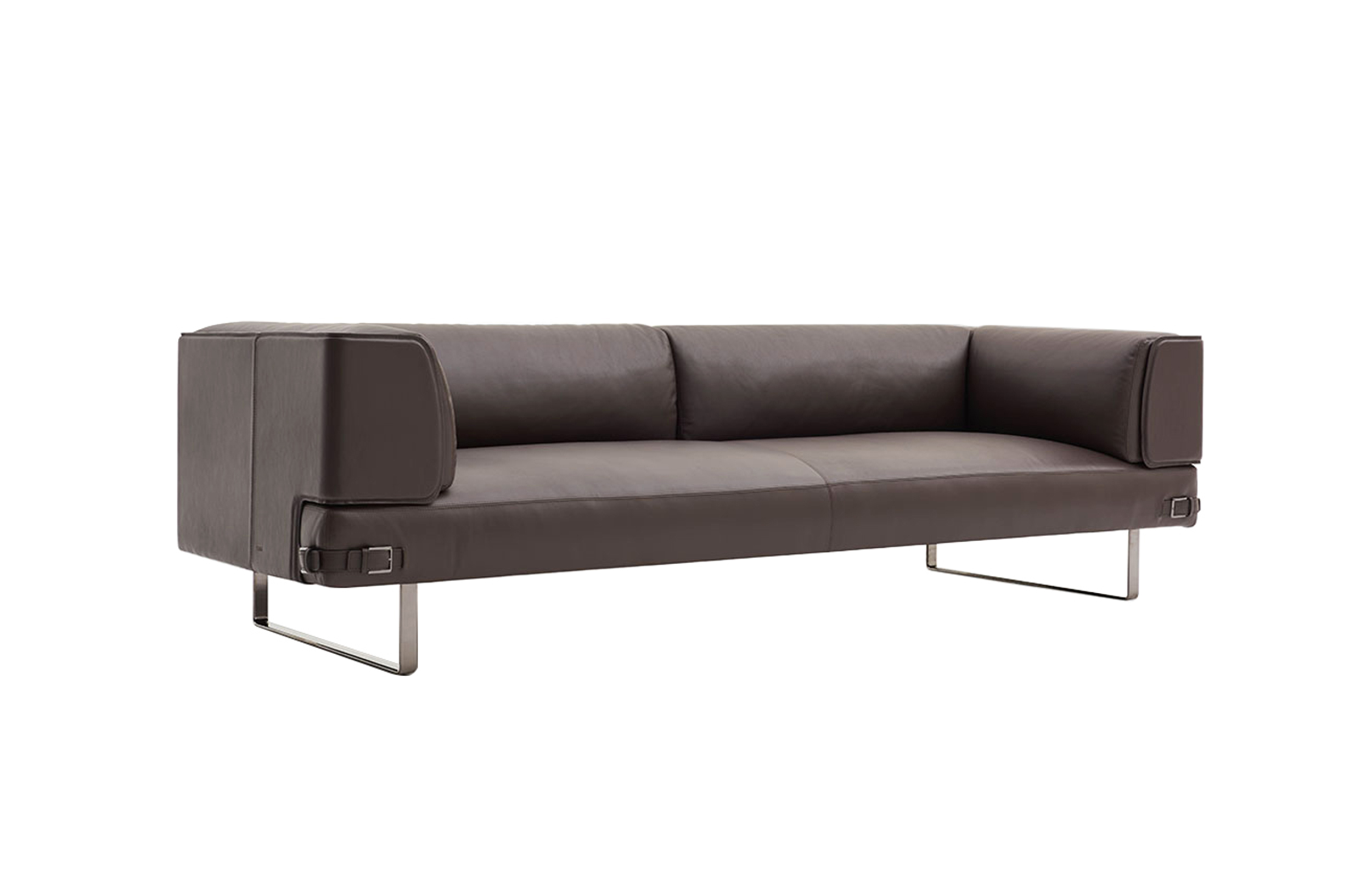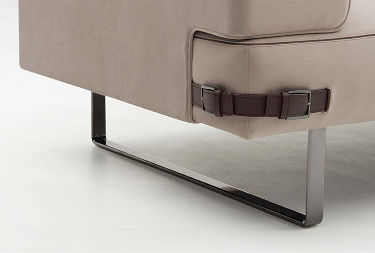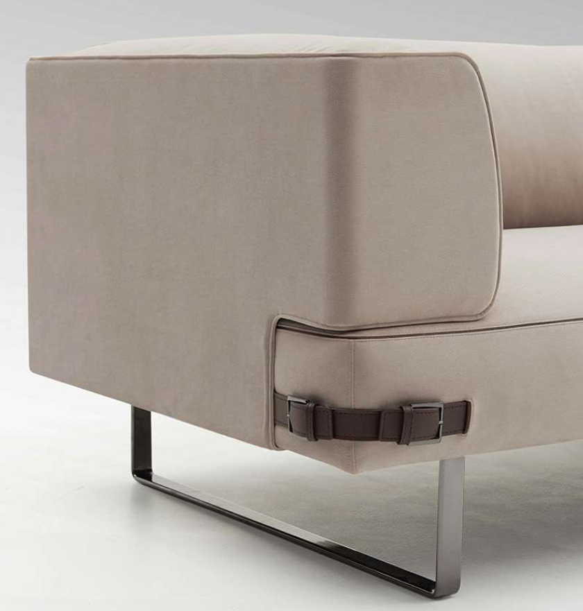 Soho Lite沙发是用钢的线性支撑元件重新塑造的。由于皮革装饰的中性色调,线性结构呈现出新的特点,而在技术面料版本中,精细材质的性能保证了柔软性和舒适性。buckles对芬迪的美学代码表示敬意,成为吸引人的细节和功能的连接器。