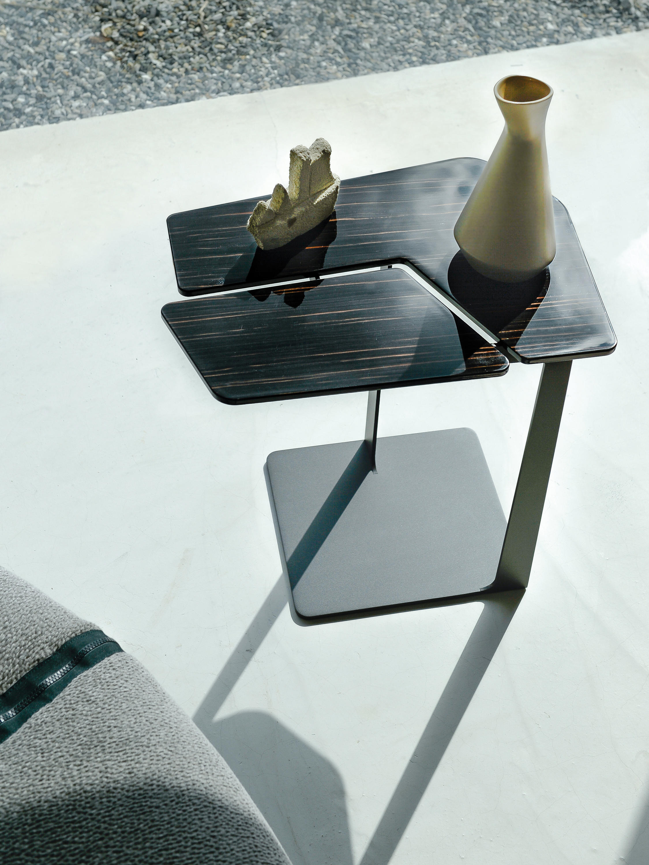 纳尔逊咖啡桌的主要特点是它的桌面。桌面被一个很深的缝隙分开但它们是由结构组成的。将木头和皮革等温暖的材料结合在一起组合成了不规则的几何形状的桌面。托斯卡纳传统的蔬菜鞣革是一种以多种颜色、独特香气和小瑕疵为特点的天然产物。