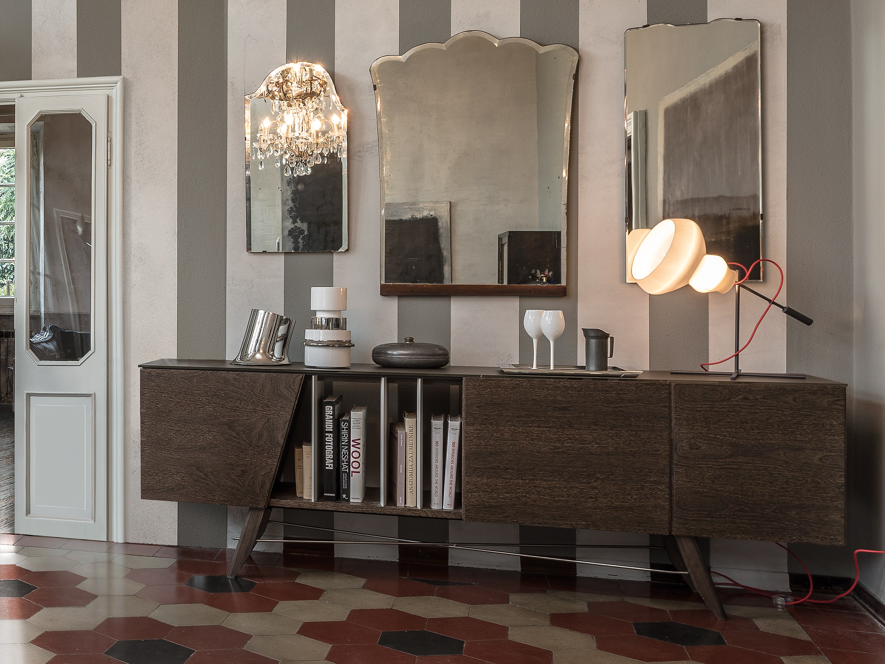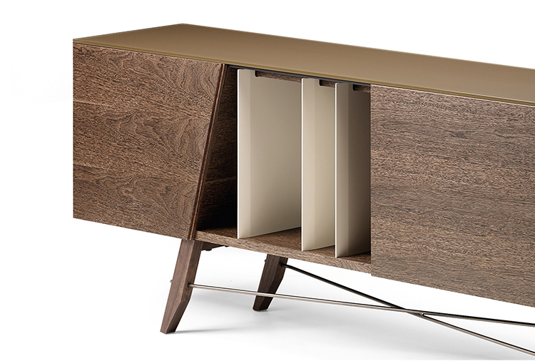 受到1950年代清醒的启发,Longplay餐具柜是多功能的,适用于任何环境。柜身的开放位置可以用来储存书籍和物品,也可以作为分割线将开放区域的客厅和餐厅完美的隔断。柜门的独特几何形状设计和柜门反弹器结合了现代魅力。顶部可以用酸蚀刻的玻璃或大理石以及建筑的热木材,在材料和颜色之间形成一种令人愉快的对比。