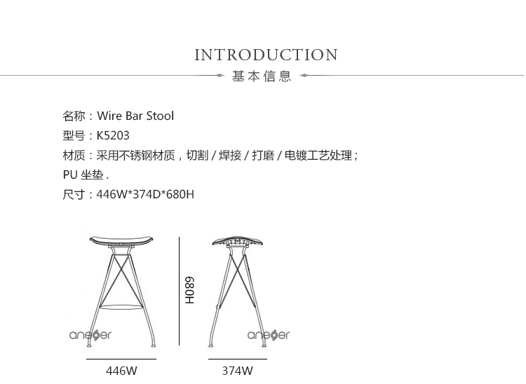 金属丝吧椅由Jasper Overgaard和Christian Dyrman设计。2014年设计的金属丝躺椅是一种更低、更宽、更平放的版本,与铁丝餐椅相比。
