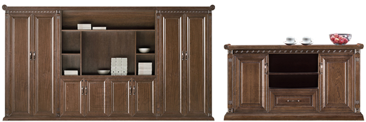 ※ 上图为配套高柜和矮柜文件柜展示,木析纹理和质感表现得更为淋漓尽致,色泽自然,配有不锈钢拉手,款式时尚而不失端庄,可以有多种颜色参考。(高柜 型号:CG-PQ2NC 规格3900W×400D×2150H;矮柜 型号:CG-5J150 规格:1500W×400D×800H )