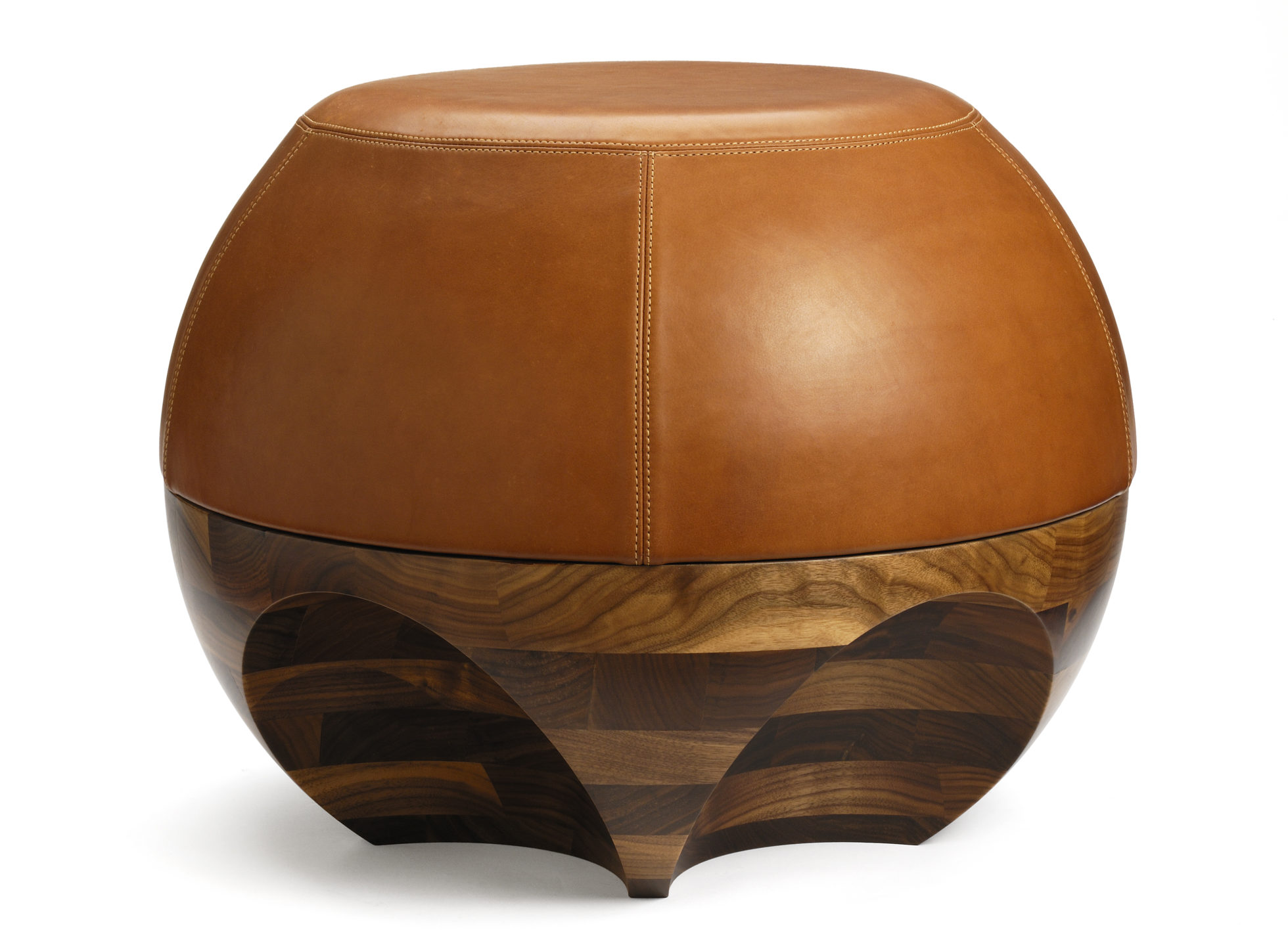 一个坚固的奥斯曼,经过精心雕琢,唤起精致复古马鞍的感觉。 固体封闭的美国黑胡桃木基地。 顶部采用传统材料和大师级马鞍皮革制成。