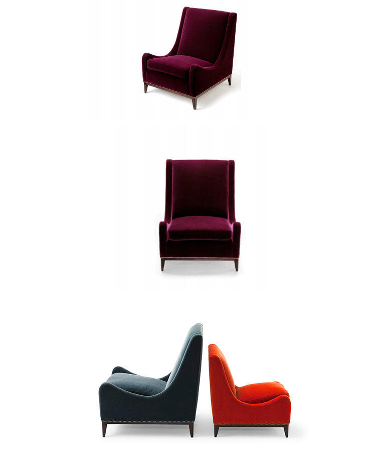 这款Sloop座椅采用Aubergine马海毛制成,配有黄铜指甲油和坚固的美国黑胡桃巧克力黑檀木腿。