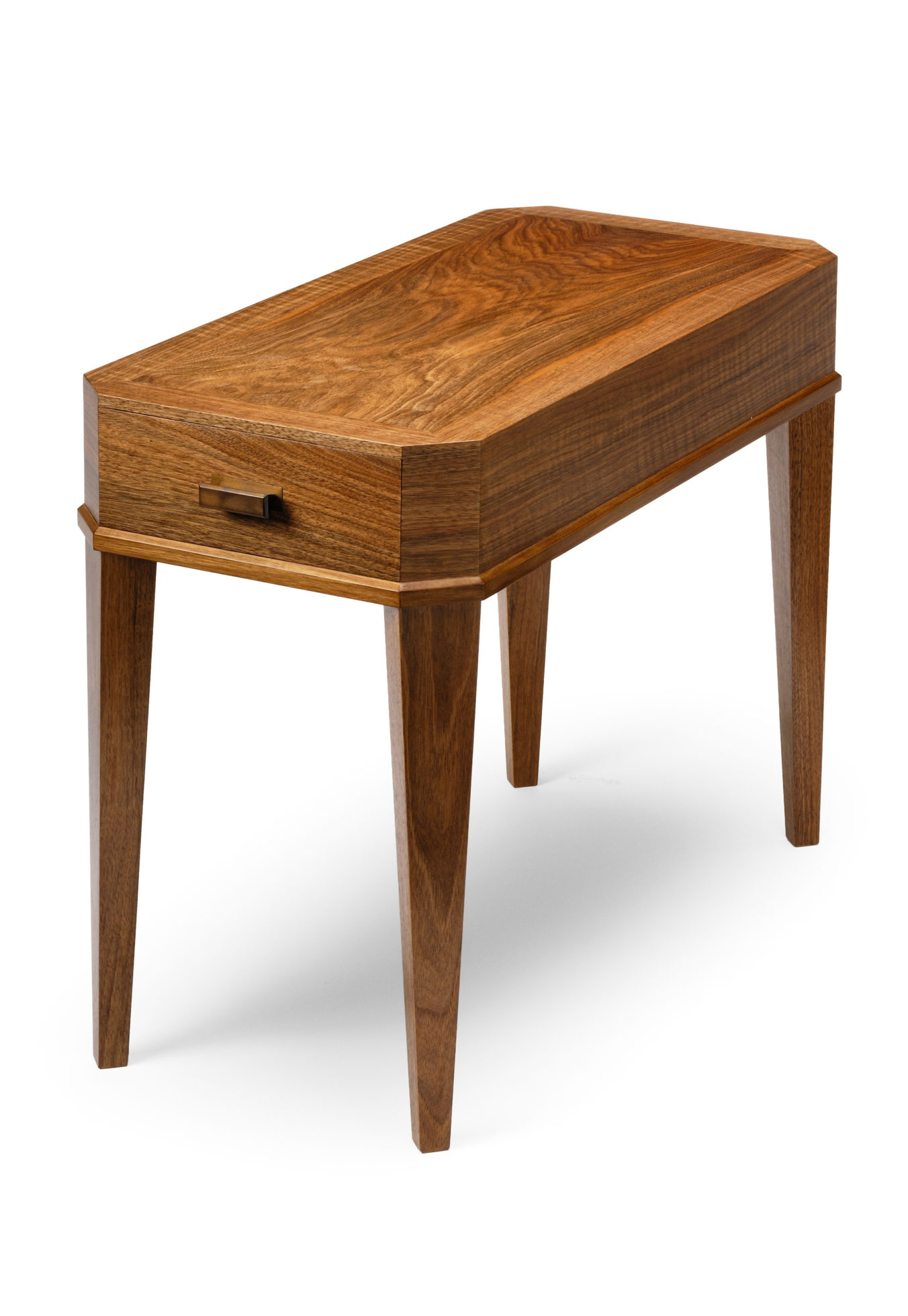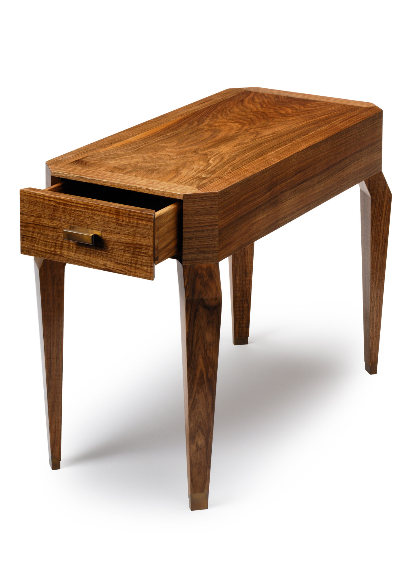 这个庄严的边桌传统上由实木和单板构成,带有坚固的金属手柄和燕尾形抽屉。