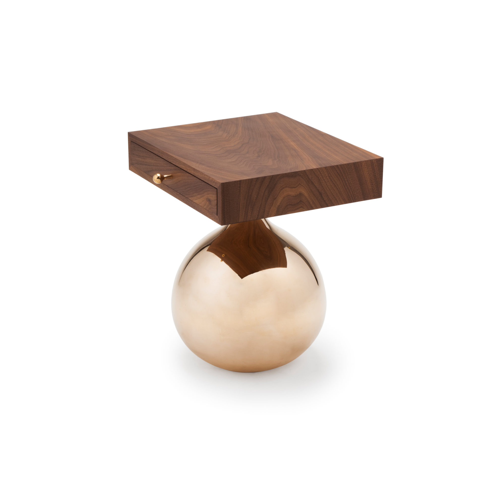 边桌上有一个抛光的青铜底座。 顶部以坚实的美国黑胡桃天然油和光显示。
