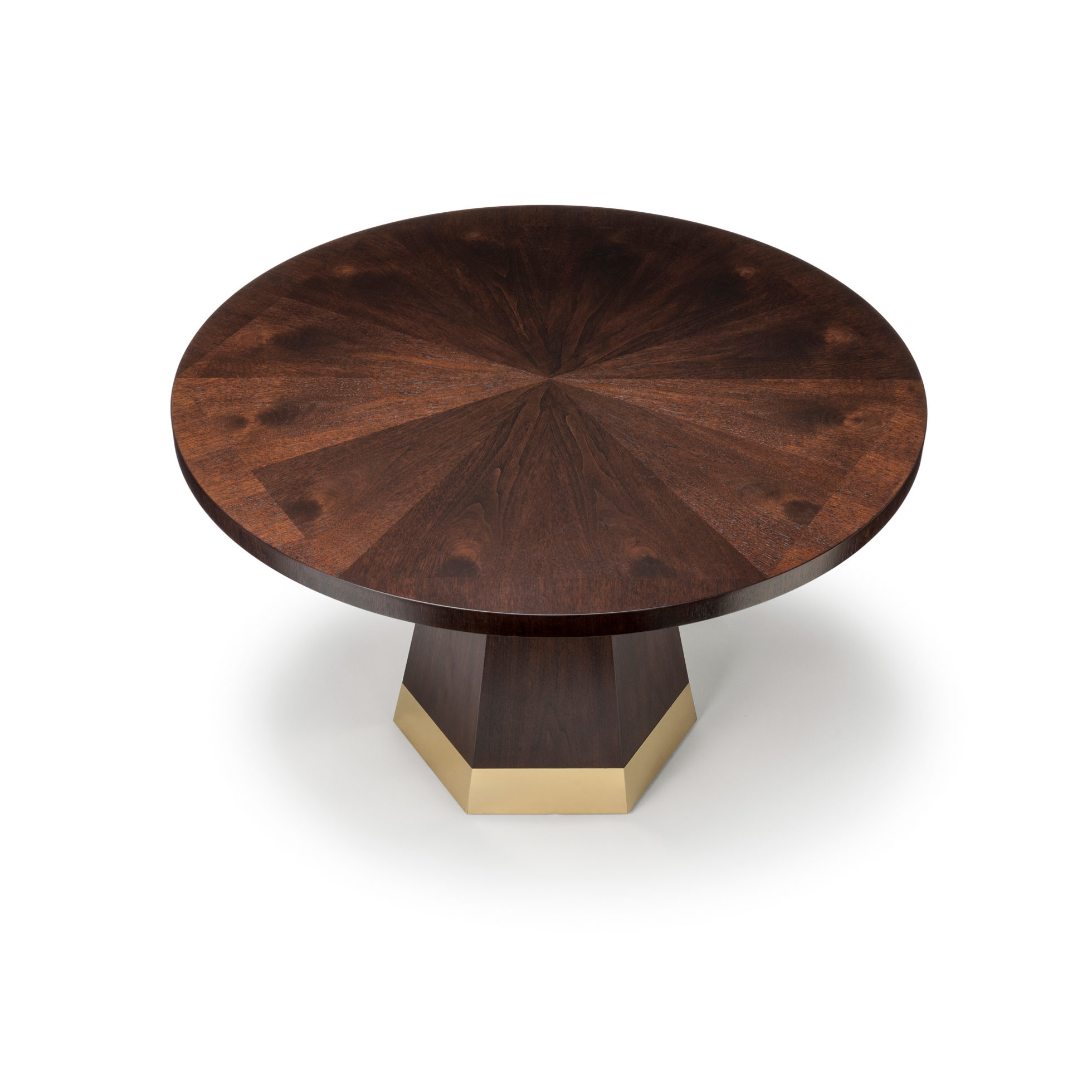 Equilibrium表显示在美国黑胡桃“巧克力乌木缎”中,带有拉丝黄铜底座。