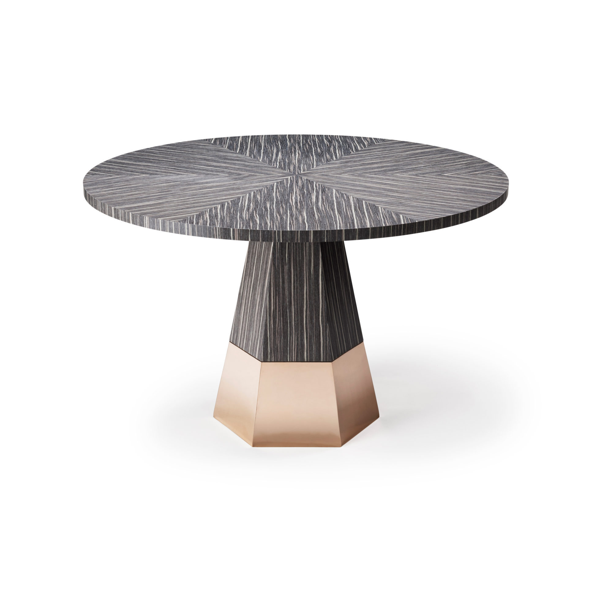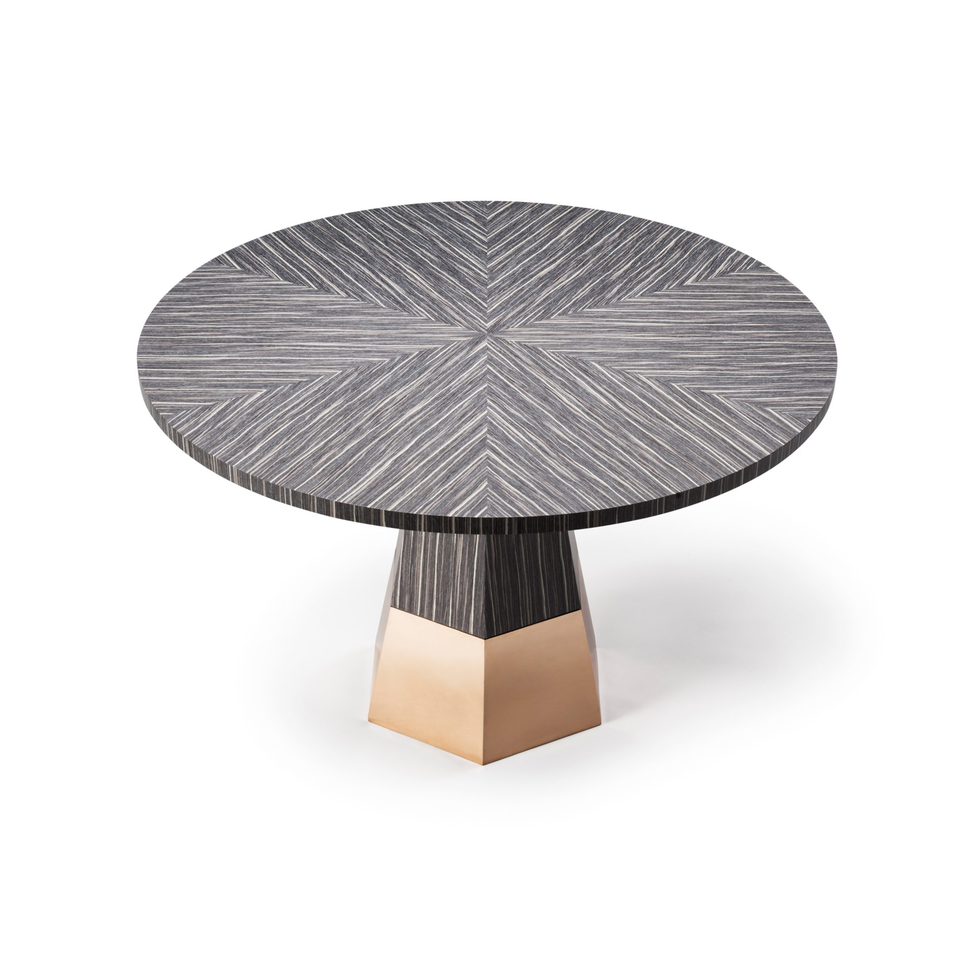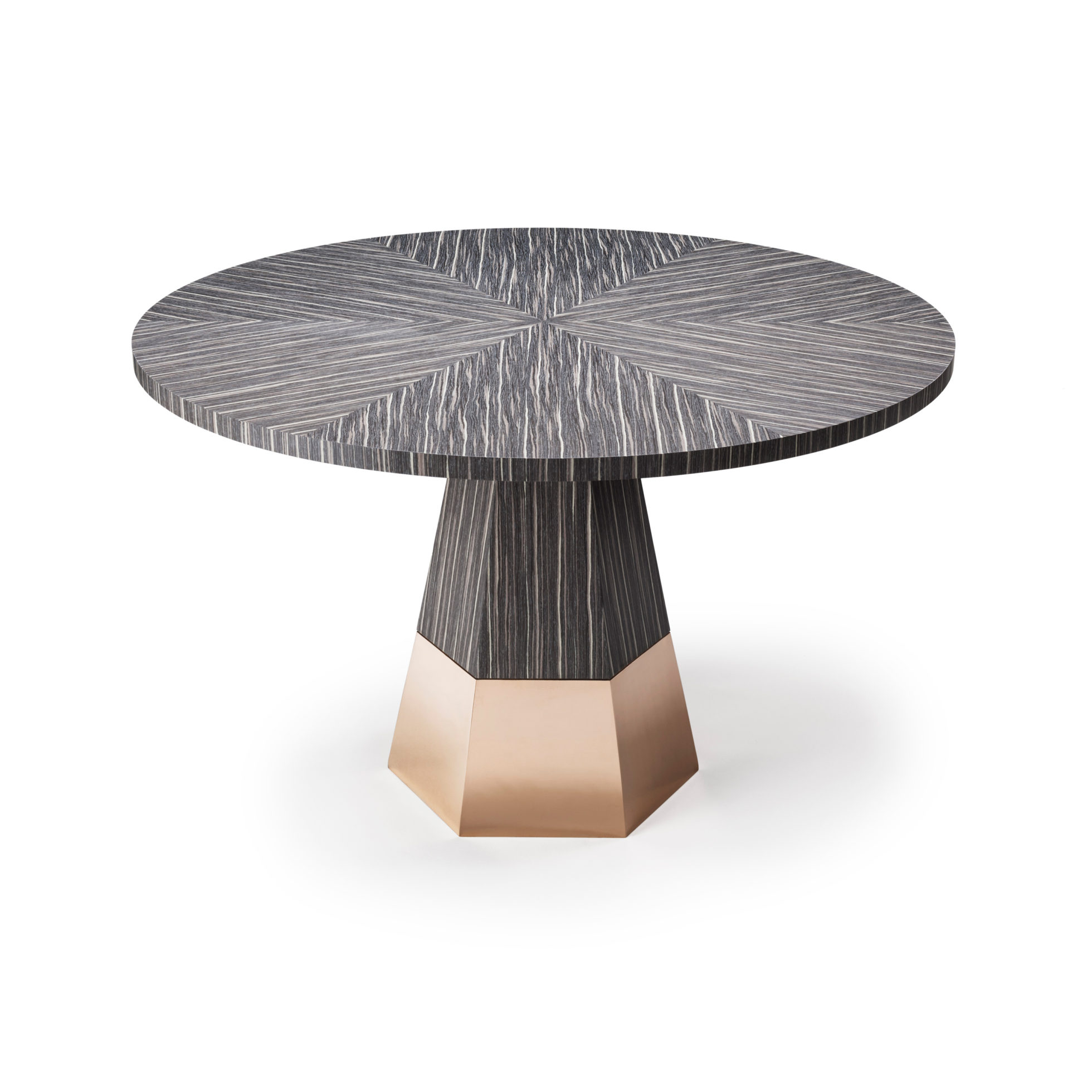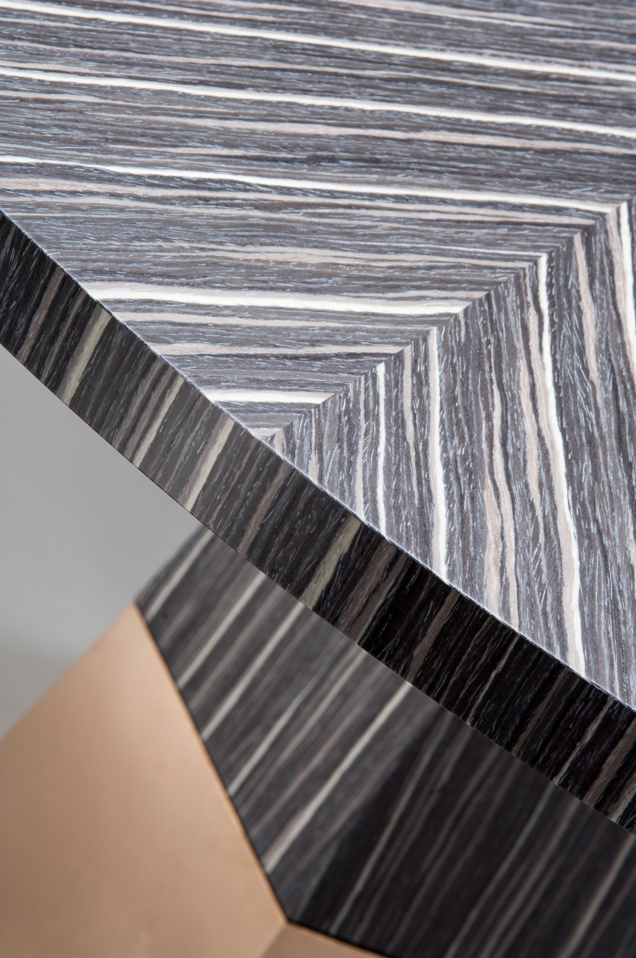 桌面有六个部分,钻石单板匹配,产生径向效果。 桌脚有一个大型铸造金属脚。