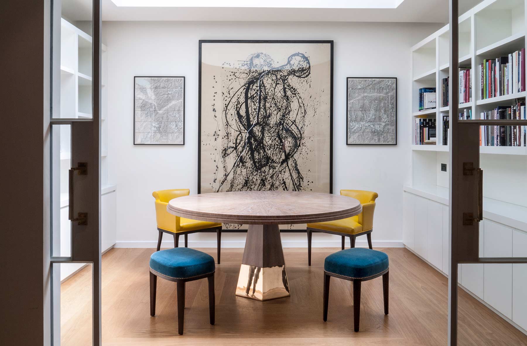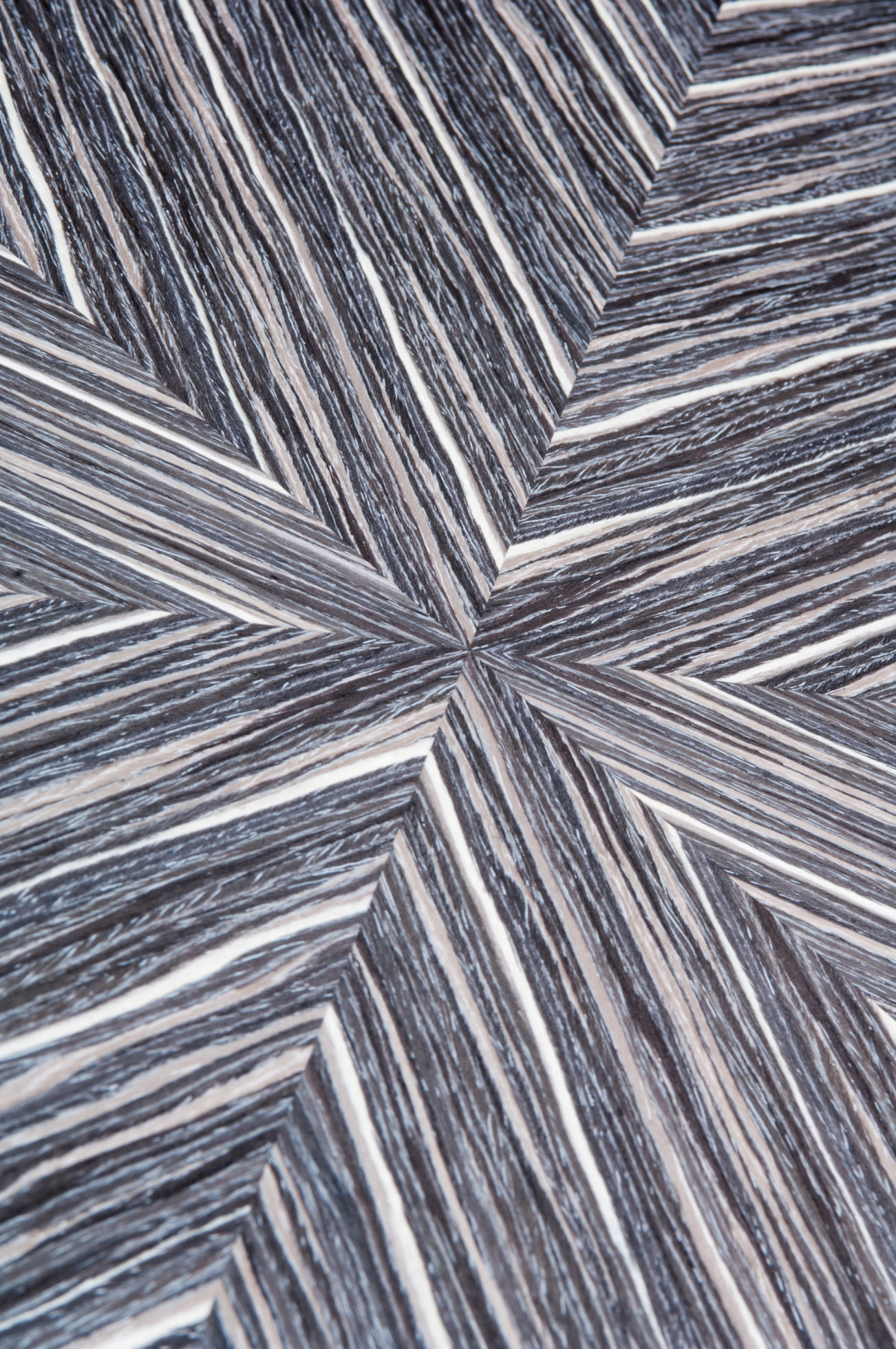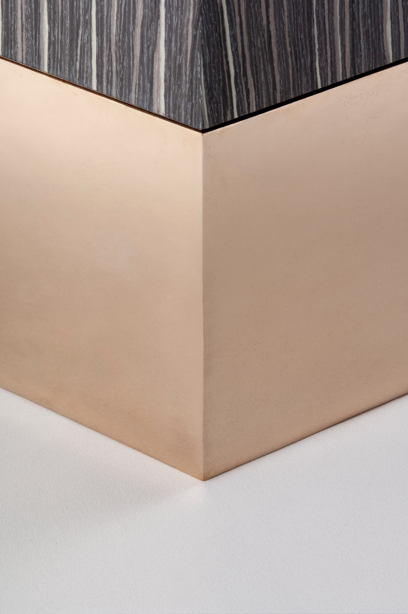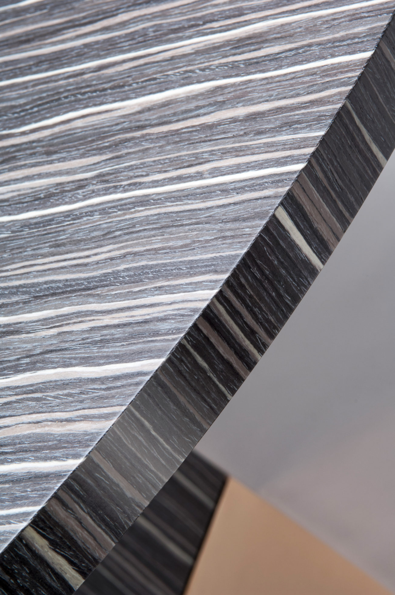 桌面有六个部分,钻石单板匹配,产生径向效果。 桌脚有一个大型铸造金属脚。