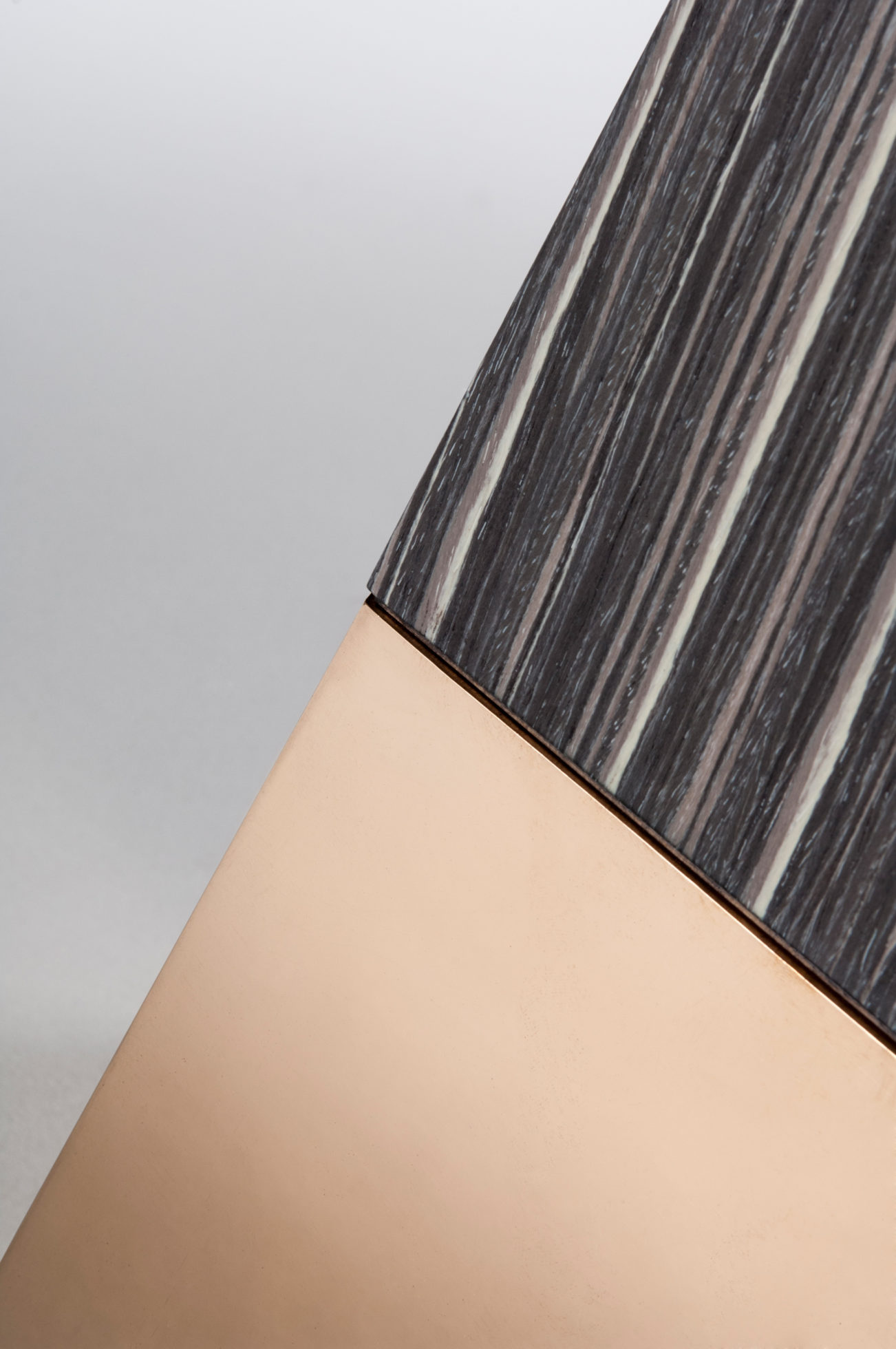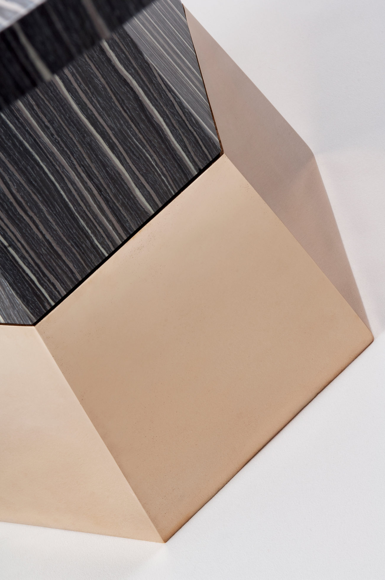 这里的平衡表显示在shima-shima杂色饰面中,带有抛光青铜底座。