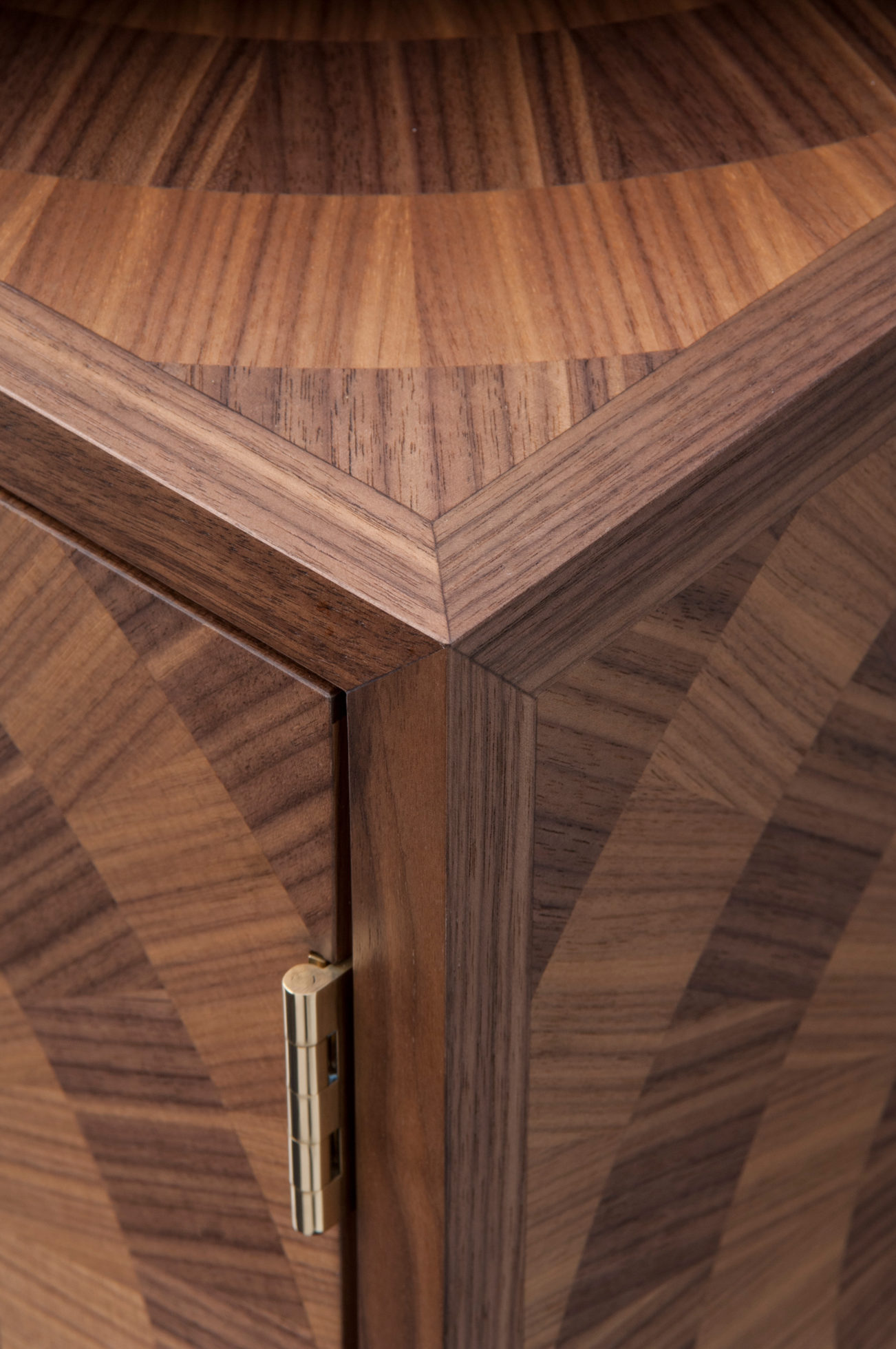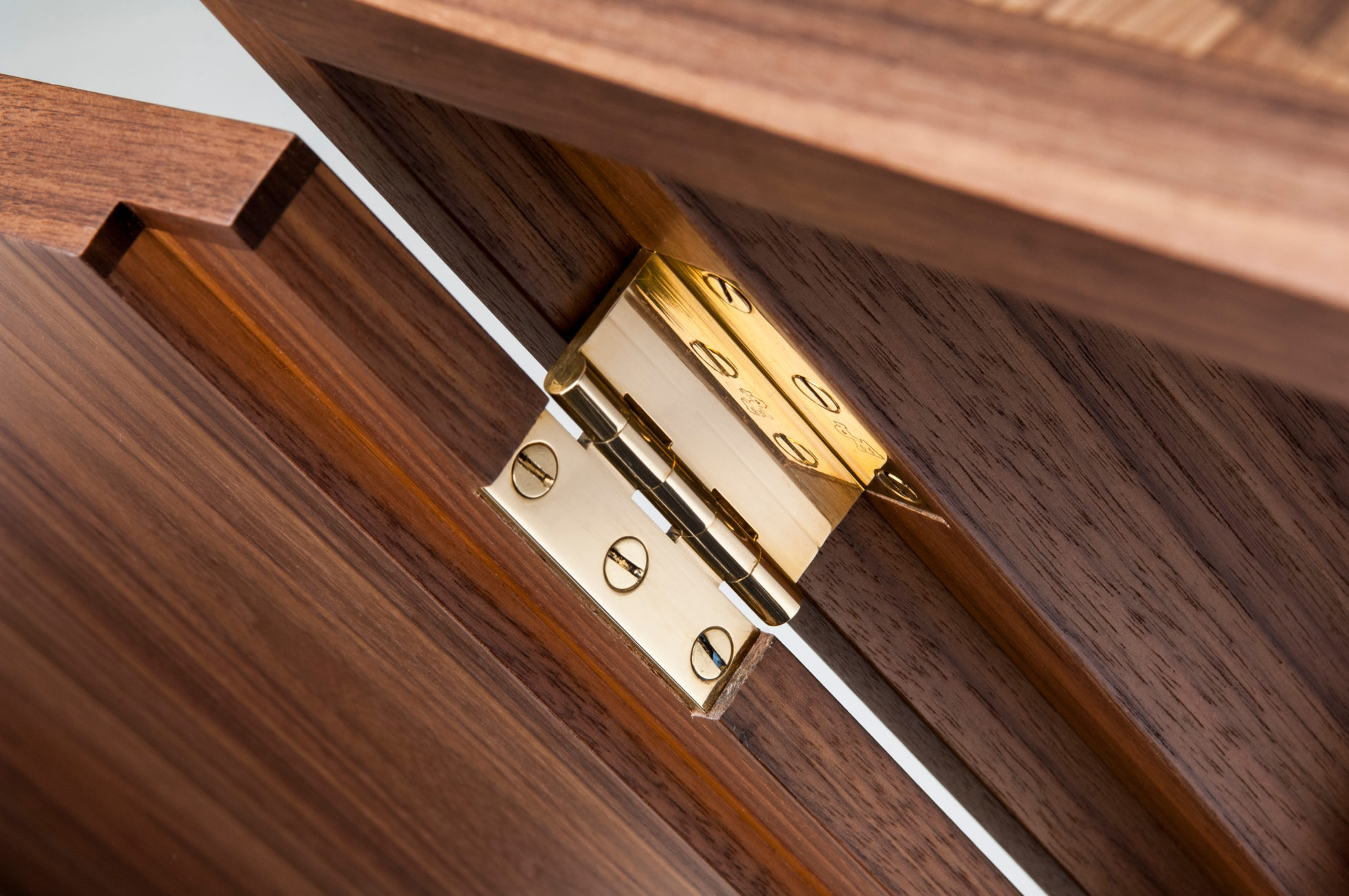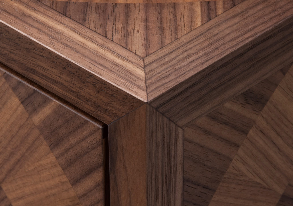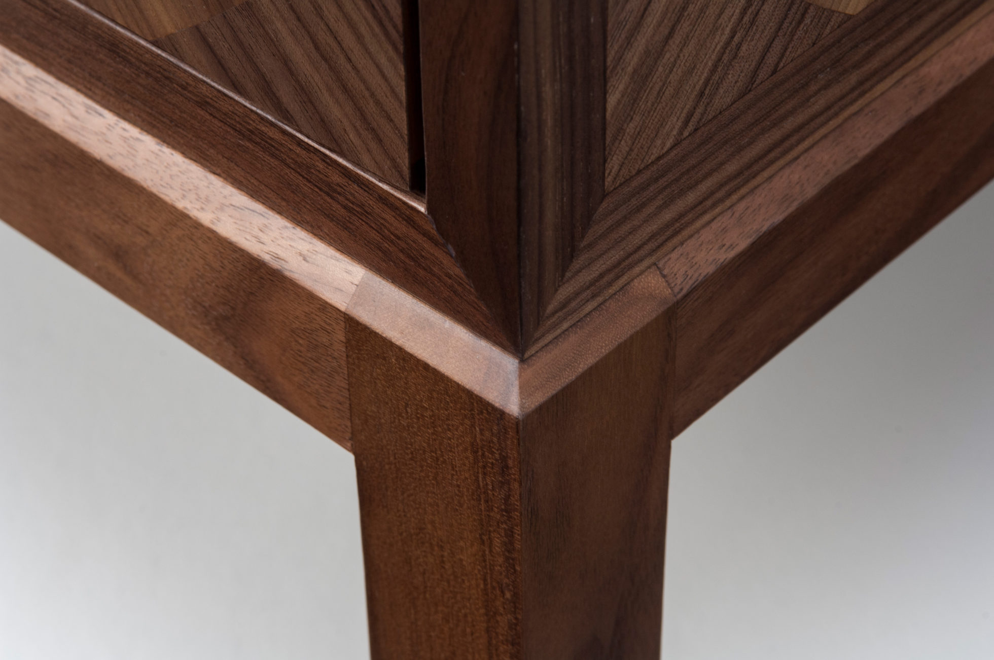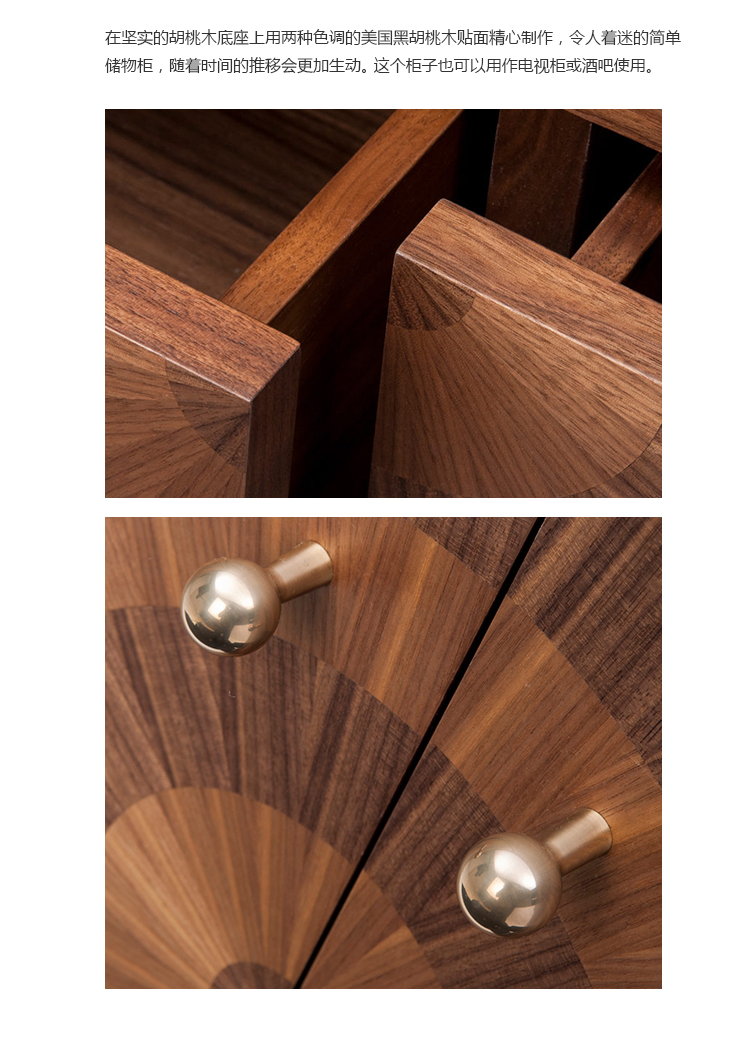 “看着我的眼睛,看着我的眼睛......”,在坚实的胡桃木底座上用两种色调的美国黑胡桃木贴面精心制作,一个简单的成为一个令人着迷的储物柜,随着时间的推移会更加生动。
