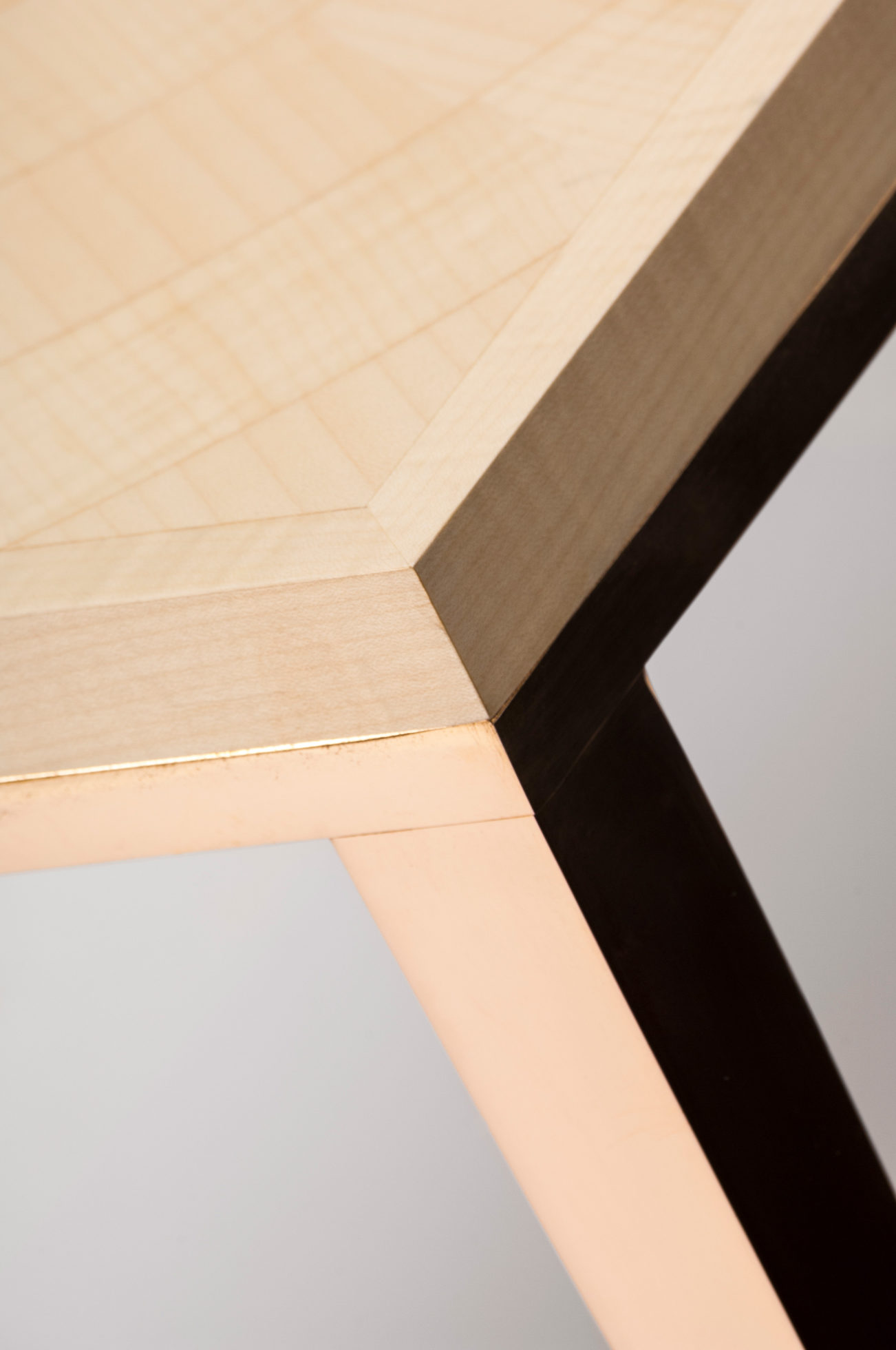 手工铺设的径向同心圆形对比色调和美国梧桐切割在坚实的抛光青铜腿上,这款特别版的Catalyst咖啡桌远远望去,而坐在附近则是错综复杂的美丽。