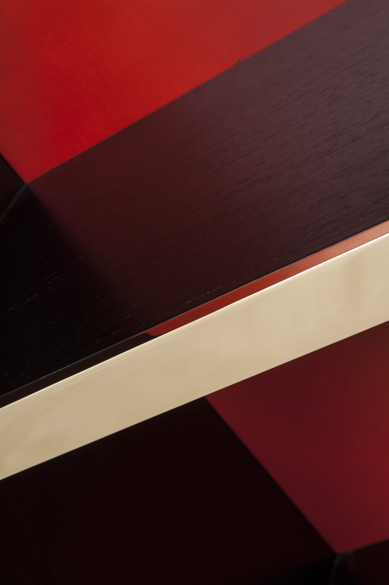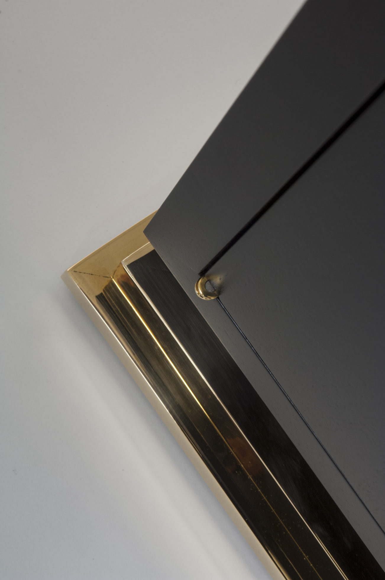 小巧但形状完美的书柜,配有真皮背板,定制手柄和抛光黄铜细节。 可订购尺寸。 这里展示的是美国黑胡桃黑檀木缎面,抛光黄铜细节和红色皮革背架。