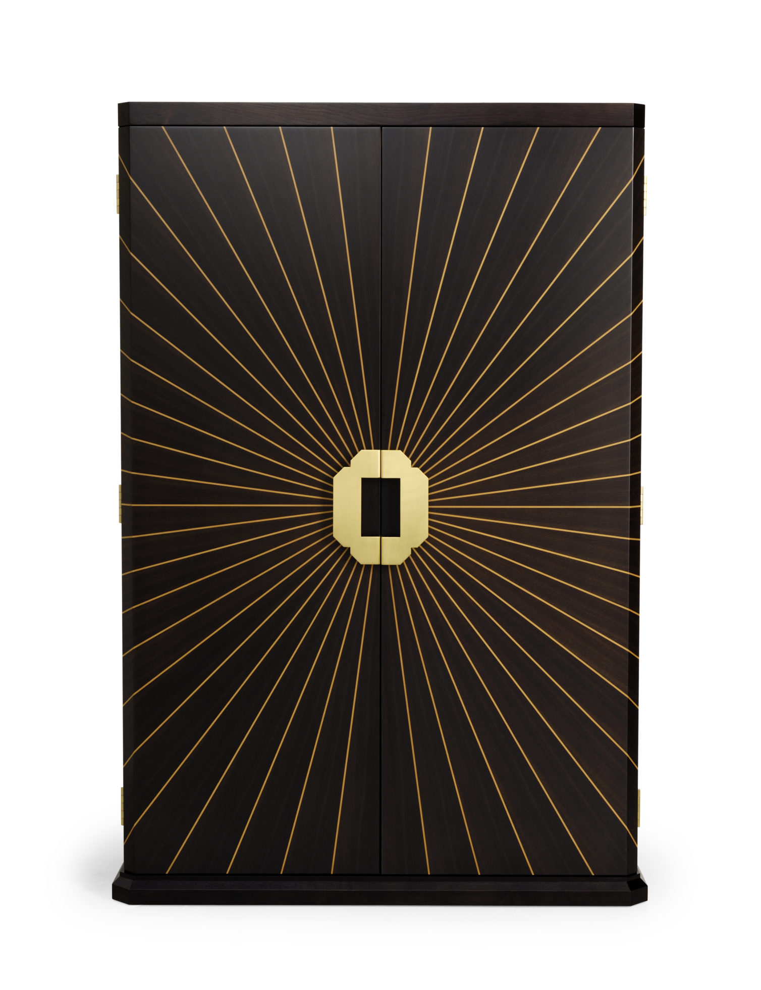 这是一个天体中心件,超新星内阁带有可调节搁板。 内部可以指定为衣柜,酒吧或其他用途。 其他木材和金属饰面可供选择。