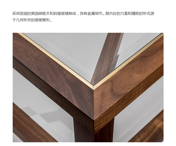 Expressing pattern beautifully, our Archebee Side Table is hand constructed of solid American black walnut and beveled glass with metal detailing. Its inherent strength and delicate form arises from where the beautiful rudiments of geometric form meet natural materials.