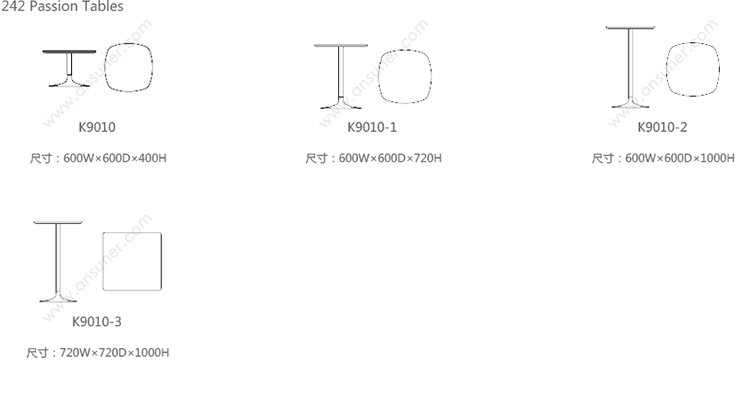242 Passion Tables 系列尺寸/示意图