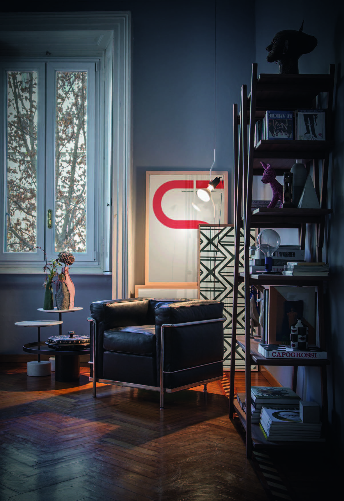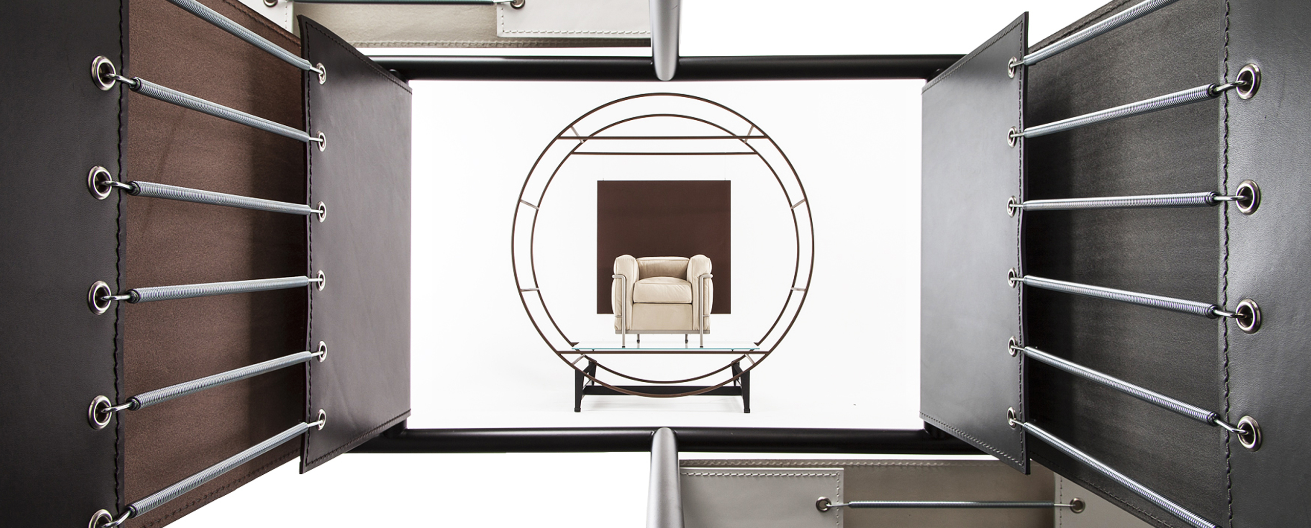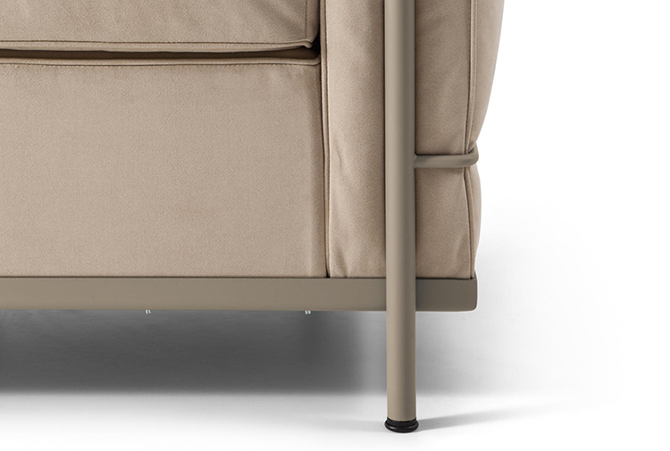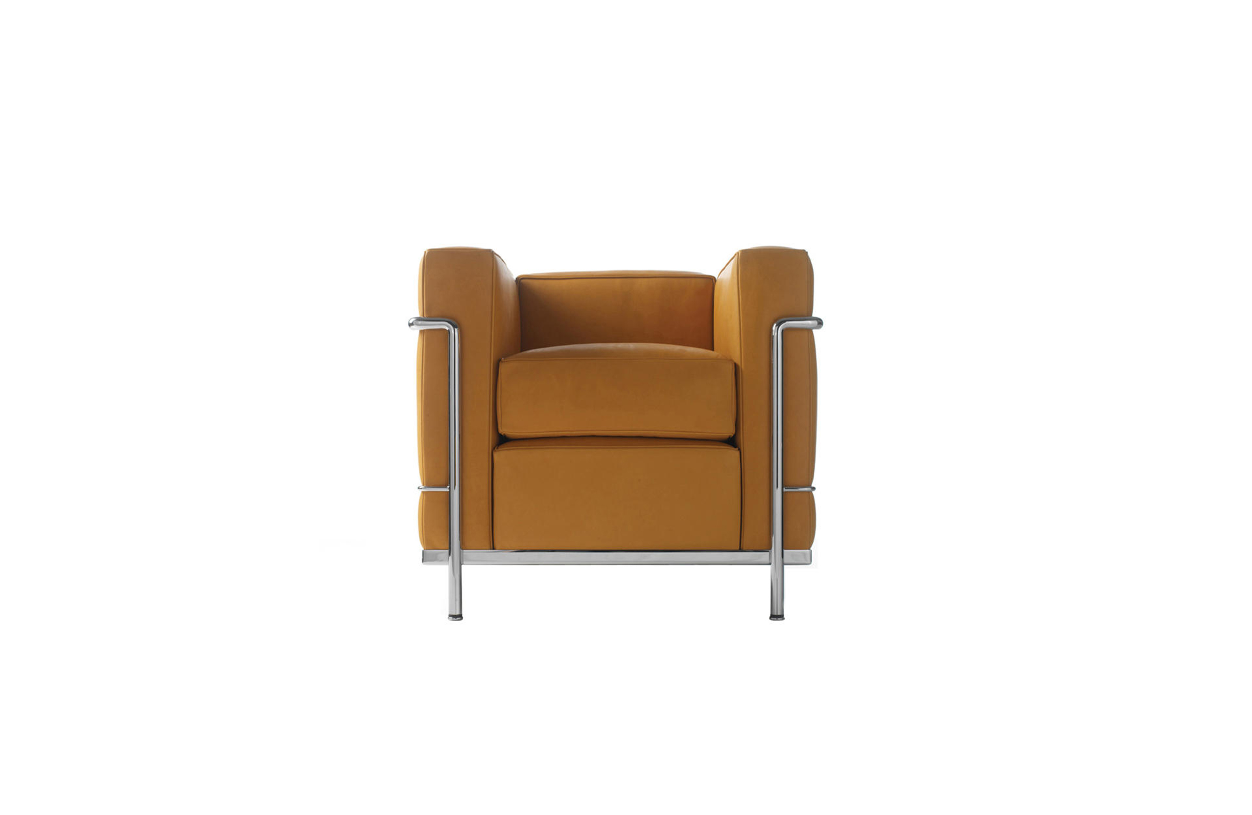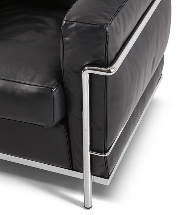 采用CR3三价镀铬钢结构或哑灰色、浅蓝、绿色、棕色、泥土色、象牙白色或黑色珐琅钢架的扶手椅,两人位或三人位沙发及脚凳。柔软的衬垫采用聚氨酯海绵和喷胶棉或聚氨酯芯羽绒棉(脚凳除外)。皮革或布艺面料软包套面。还有仅用于镀铬钢架模型的技术微纤维织物。设计史上另一个永恒的经典。于1928年设计的该款是现代椅的原型。内部靠垫与笼式框架的分离是椅子理性方法的具体肯定。真正的经典之作。
