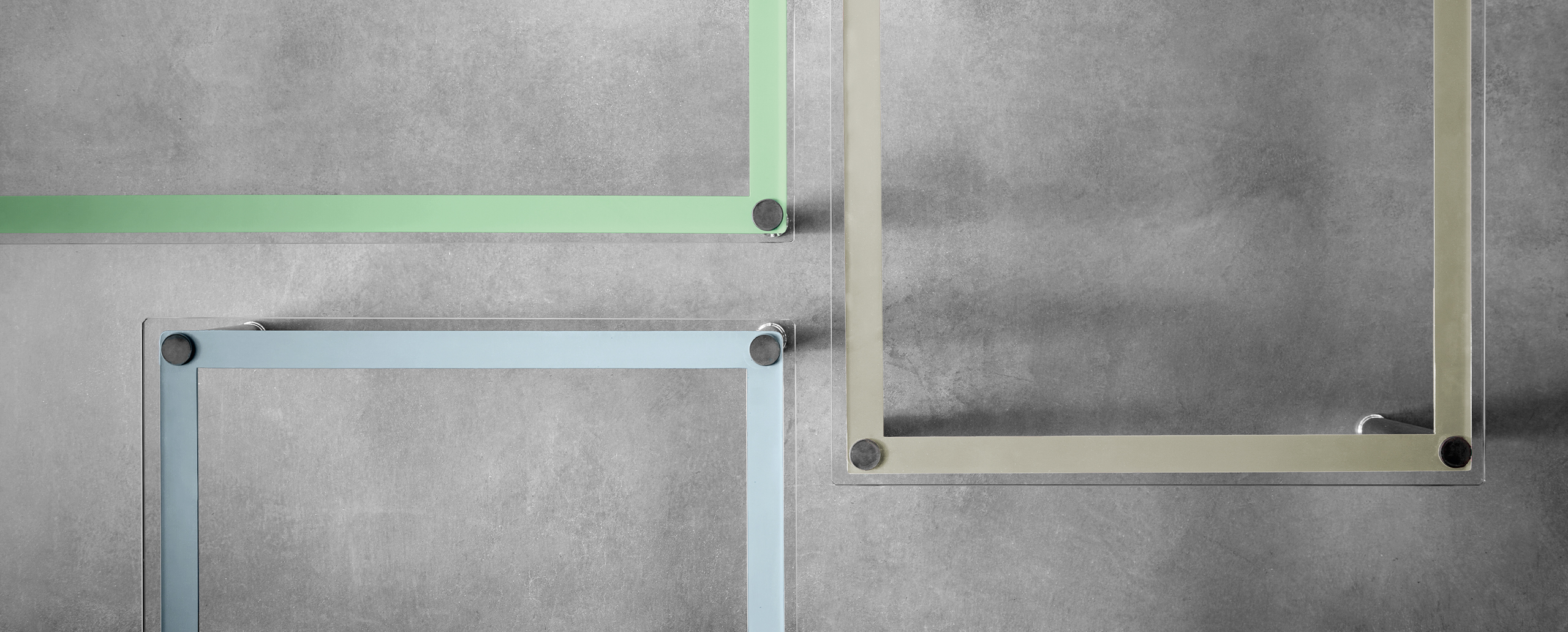 1984年改版的Charlotte Perriand LC10桌子。CR3三价镀铬钢结构涂哑光漆,有多种色彩选择:灰、淡蓝、绿、棕,泥土和象牙或黑色。玻璃台面有透明和纹理两种,15mm厚。也有户外版本。长宽高120x80x70cm, 看起来像是1929年巴黎秋季沙龙中参展的桌子,“居室的装置”的一部分。这款桌子最大地简化了框架,镀铬管状桌腿和喷漆的边饰都很极简,金属处理的表现力实现了桌子的完美效果。
