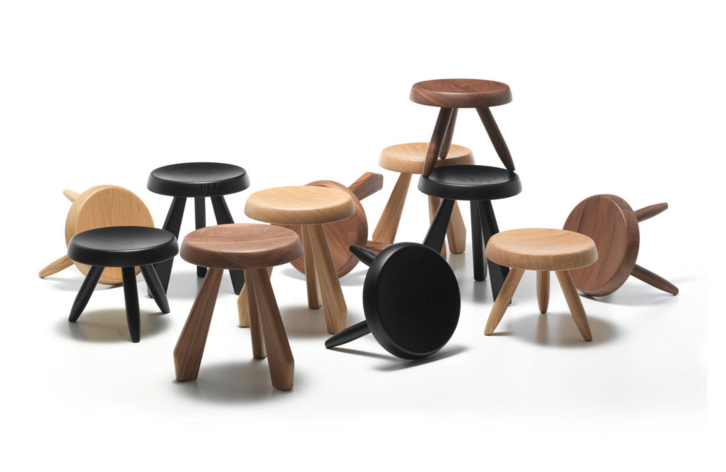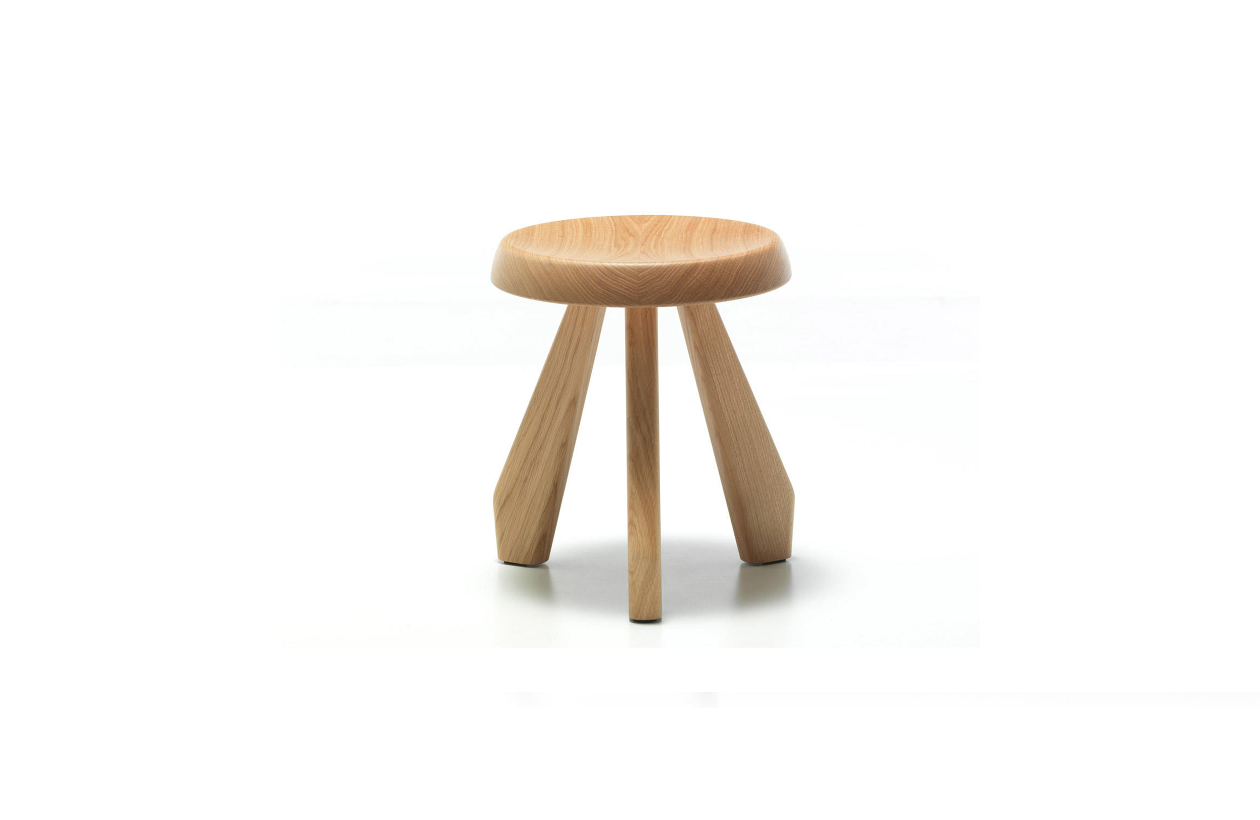 Tabouret Berger 低脚凳第一次在1955年于东京Synthese des Arts展出。采用自由主义风格,正如其名字所暗示的一样,该凳的灵感来自牧羊人所用的凳子。该凳采用三条“圆棍型”凳腿,提供三种不同实木饰面:天然橡木、哑光黑色橡木和天然美国胡桃木。