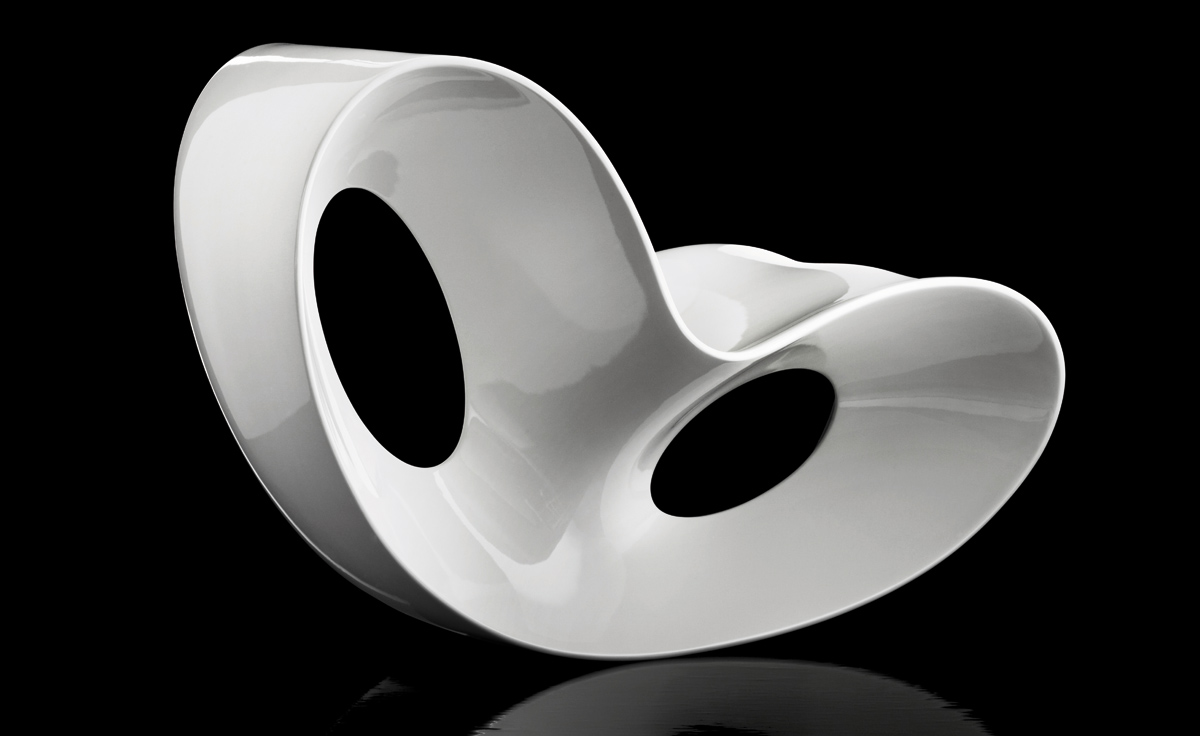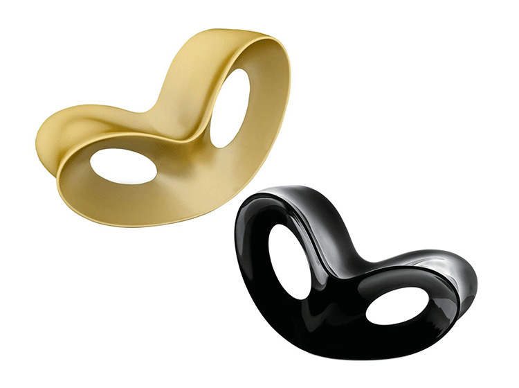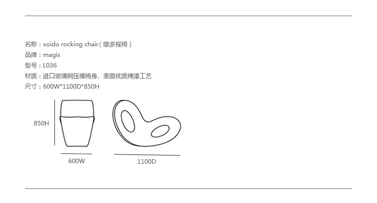 Voido Rocking Chair (维多摇椅)是由设计师 Ron Arad创作的前卫设计,流畅的线条变化,镂空的主体,不单只是一张抢眼的摇椅,也是超现代的摆饰,经过几代的材质与制作的调整,加上设计的修改,今天的 Voido 更是完美。 Voido Rocking Chair (维多摇椅)采用旋转成型聚乙烯制成,哑光的白色、橘色、灰色可使用于室外,亮黑、亮白、亮金色版可以使用于室内。