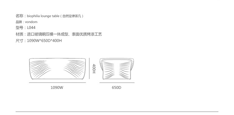 Biophilia(自然定律)系列设计师为Ross Lovegrove,其由一张桌几Biophilia Lounge Table(自然定律茶几)、一把休闲椅Biophilia Lounge Chair(自然定律椅)和一套沙发Biophilia Lounge Sofa(自然定律沙发)组成。Biophilia(自然定律)系列探索了一种新的设计语言,形成了时间、 形态和空间之间的对话,开拓有机设计,滚塑成型技术。这个过程中开发了持久美丽和性感的,运动带来的有机世界的多样性的艺术新形式,给设计师、 艺术家、 摄影师和建筑师都带来了设计启发。