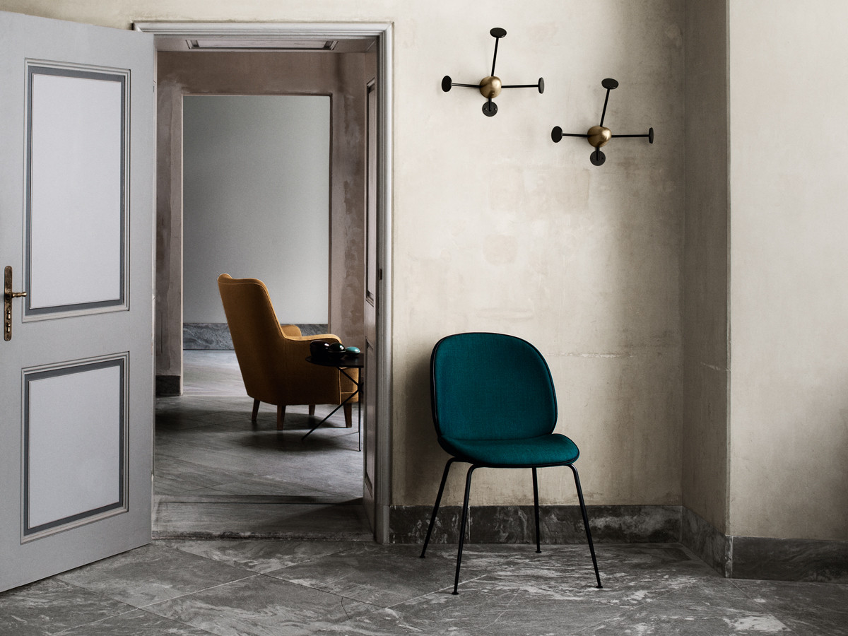 由于GamFratesi一直密切关注甲虫的解剖学,美学和运动,因此在昆虫世界中发现了甲壳虫椅的灵感。 椅子的设计重新诠释了甲虫部分的特征元素:形状,贝壳,缝合线,刚性外部和柔软的内部。
