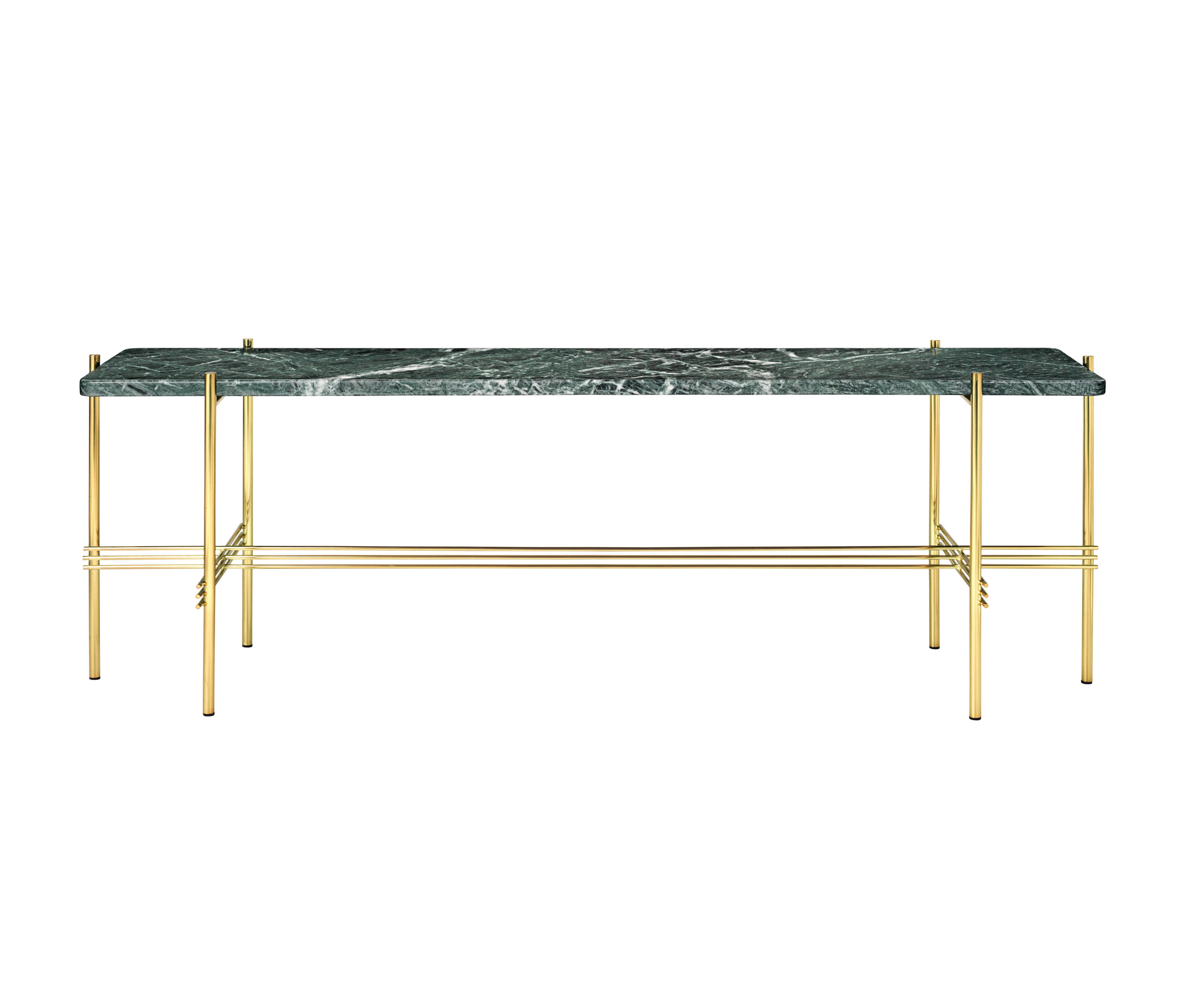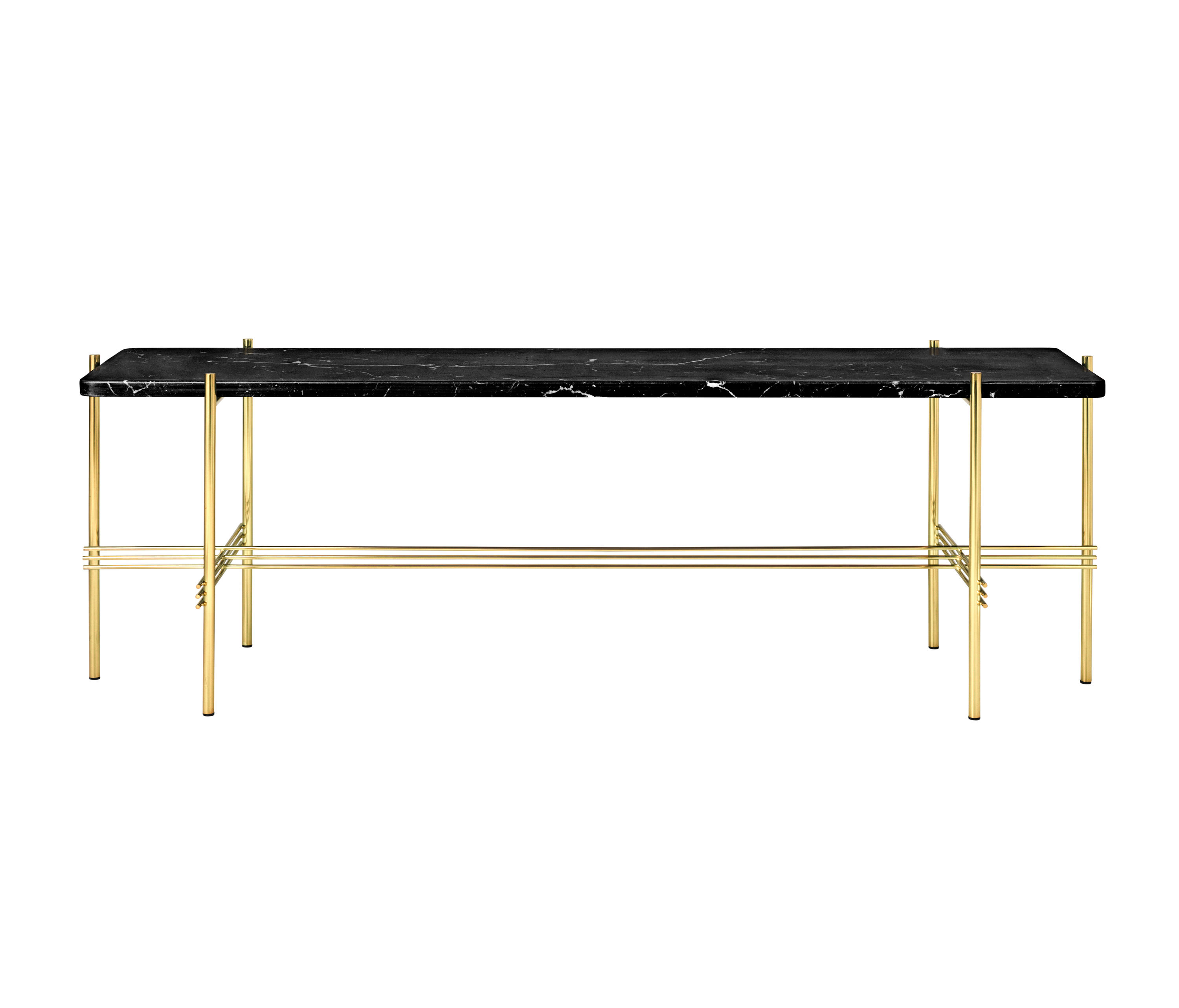 TS装饰架有两个版本——TS装饰架1和TS装饰架2。TS装饰架1有一个大理石托盘和TS装饰架2有两个大理石托盘,或一个大理石托盘和一个金属托盘。在两者上,一个黑漆框架是对比大理石顶部。