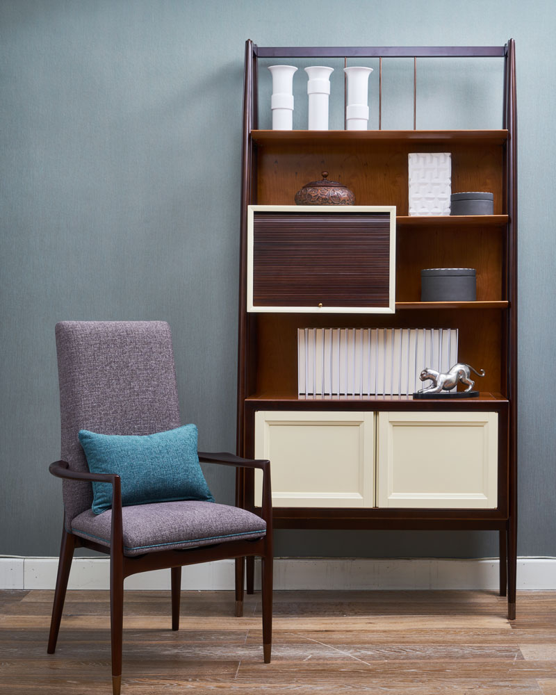 采用燕尾榫造型的拉手,符合成年人手型,不费力即可轻松打开;进口隐藏式铰链;铜脚,赋予中式韵味的同时以防磨损;卷帘门,便于开启。设计灵感来源于中国传统的博古架,同时融入了更多的创新元素,精心设计了卷帘式的开启方式并可灵活移动,还结合了现代智能化的光电感应。