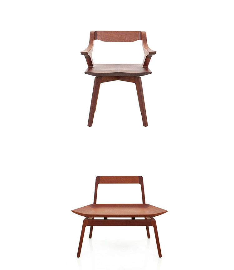 由Shuwa Tei设计的New Legacy系列将传统工艺与现代技术完美结合,展现了木质桌椅设计的更多可能性。其风格更为现代,糅合了东西方的设计元素,营造出令人印象深刻的视觉效果。