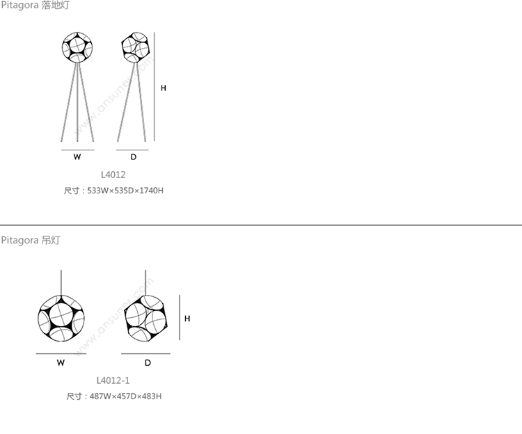 Pitagora 落地灯 系列尺寸/示意图