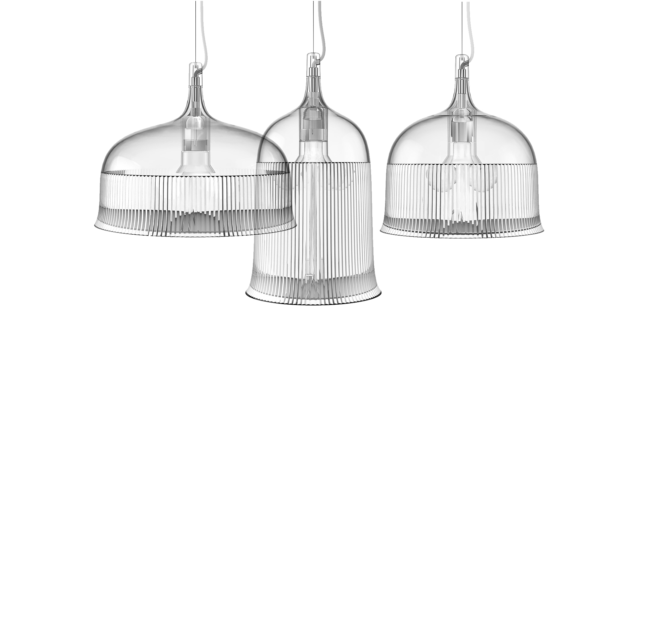 这款经典的水晶玻璃从原来的比例中拿出来,变成了三种不同形状的台灯,类似于香槟长笛、高脚杯和圣杯。