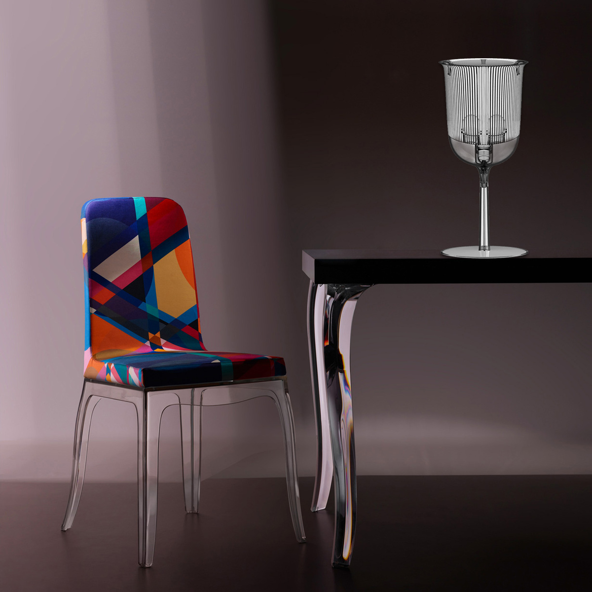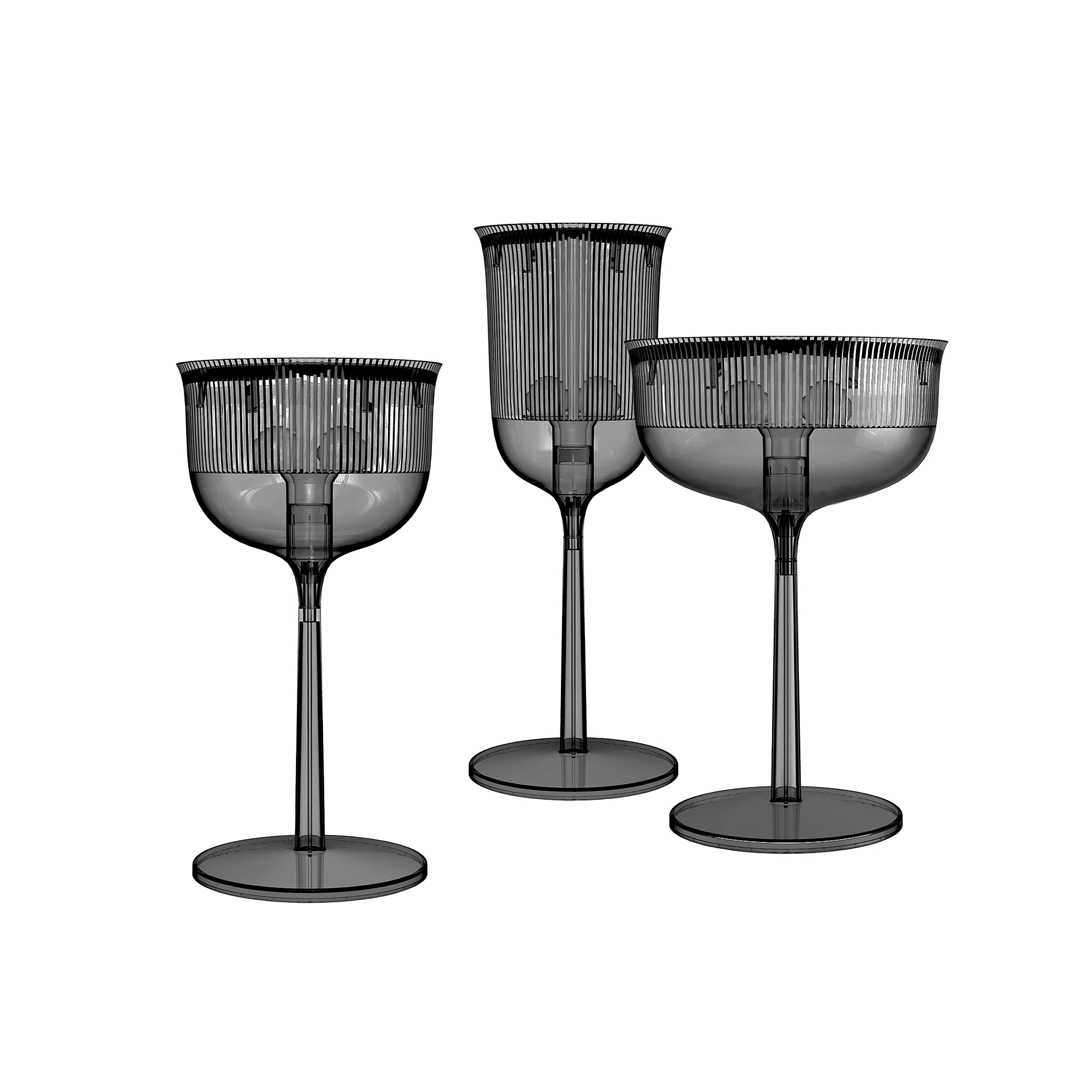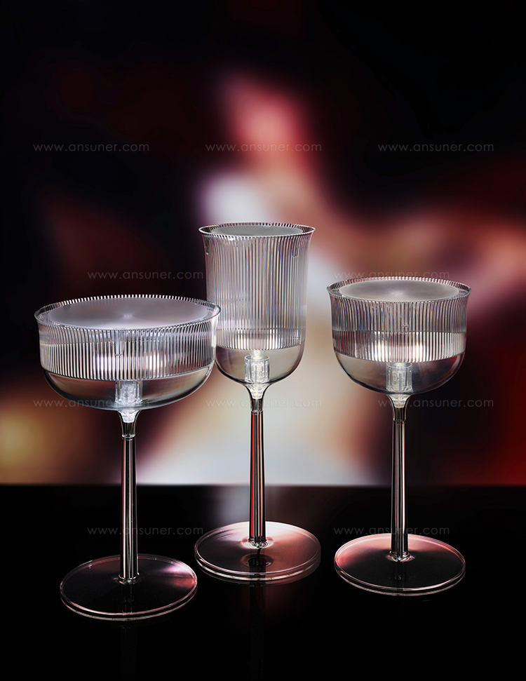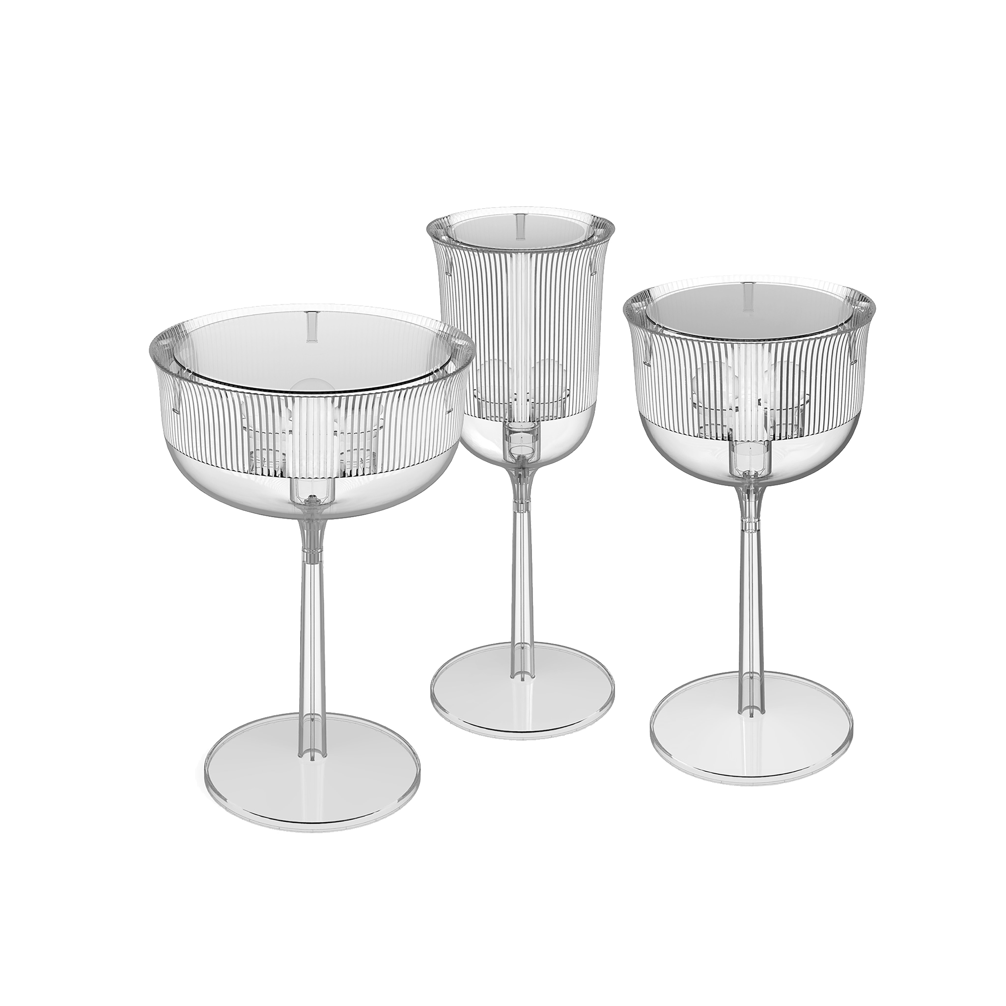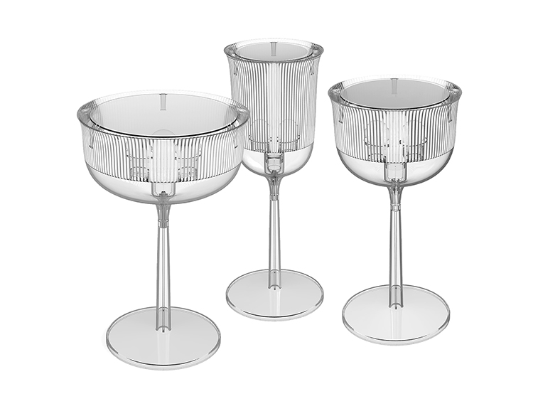 这款经典的水晶玻璃从原来的比例中拿出来,变成了三种不同形状的台灯,类似于香槟长笛、高脚杯和圣杯。