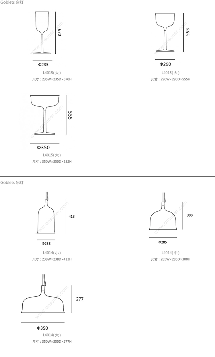 Goblets 台灯 系列尺寸/示意图