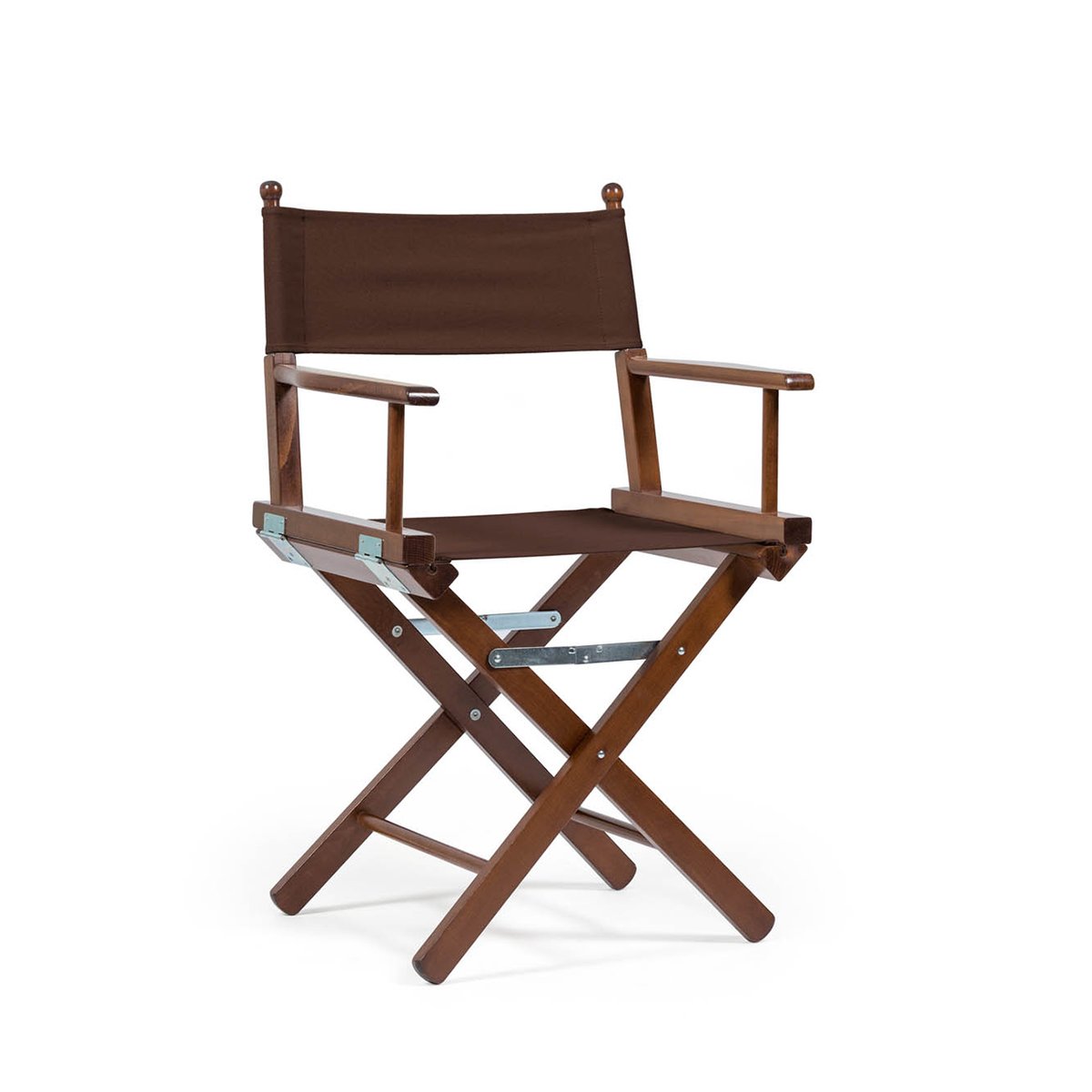 传奇导演的椅子以高级棕色,带有防水织物。手工在意大利,它有一个坚实的山毛榉木材框架,可在自然或柚木成品。