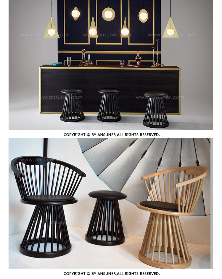 最初是一个戏剧性和雕塑的经典英国设计,风扇是作为一个高背椅,餐椅,凳子和桌子。凳子和椅子有一个黑色的皮革座椅垫,而椅子的特点是弯曲的背部,提供支持和舒适。可选用黑桦树或天然橡树。