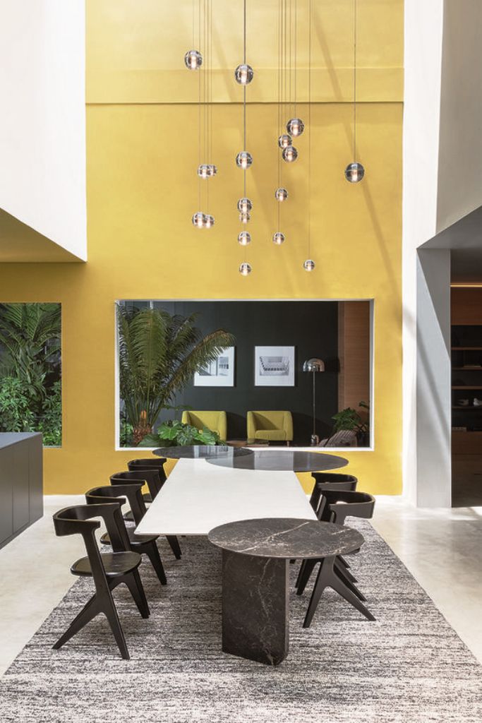 用黑色或天然漆进行处理。 Slab集合包括凳子,椅子,餐桌和桌子。