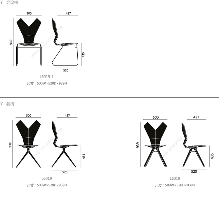 Y 会议椅 系列尺寸/示意图