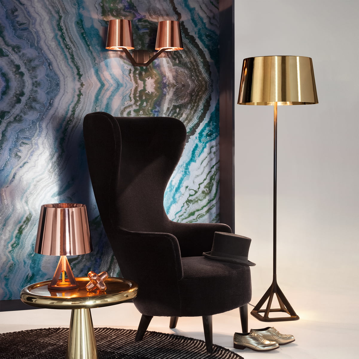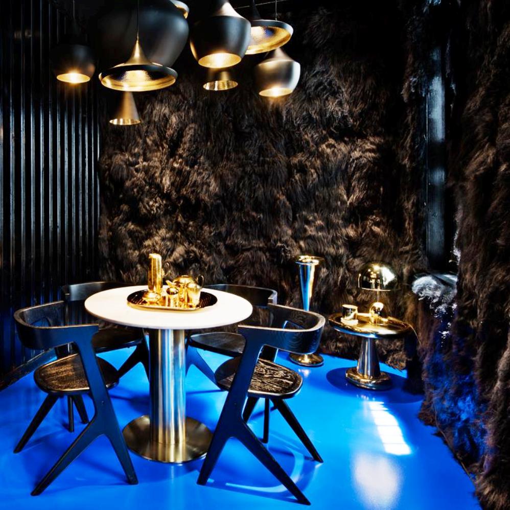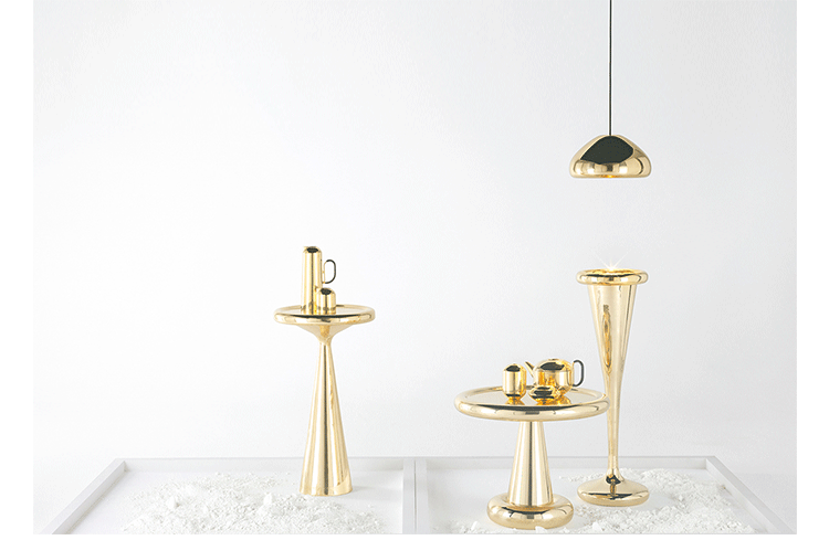 由Tom Dixon Space age, Art Deco or Pop设计的2013 Spun-sheet solid brass bronze——这三件极具表现力、偶尔会出现的家具,每个人都看到了不同的影响。她说:“这是一件非常漂亮的作品。它的比例非常大,用手工抛光的纯黄铜薄板做成的曲线状,使鸡尾酒吧、餐厅或客厅立刻焕发出迪斯科的魅力。”