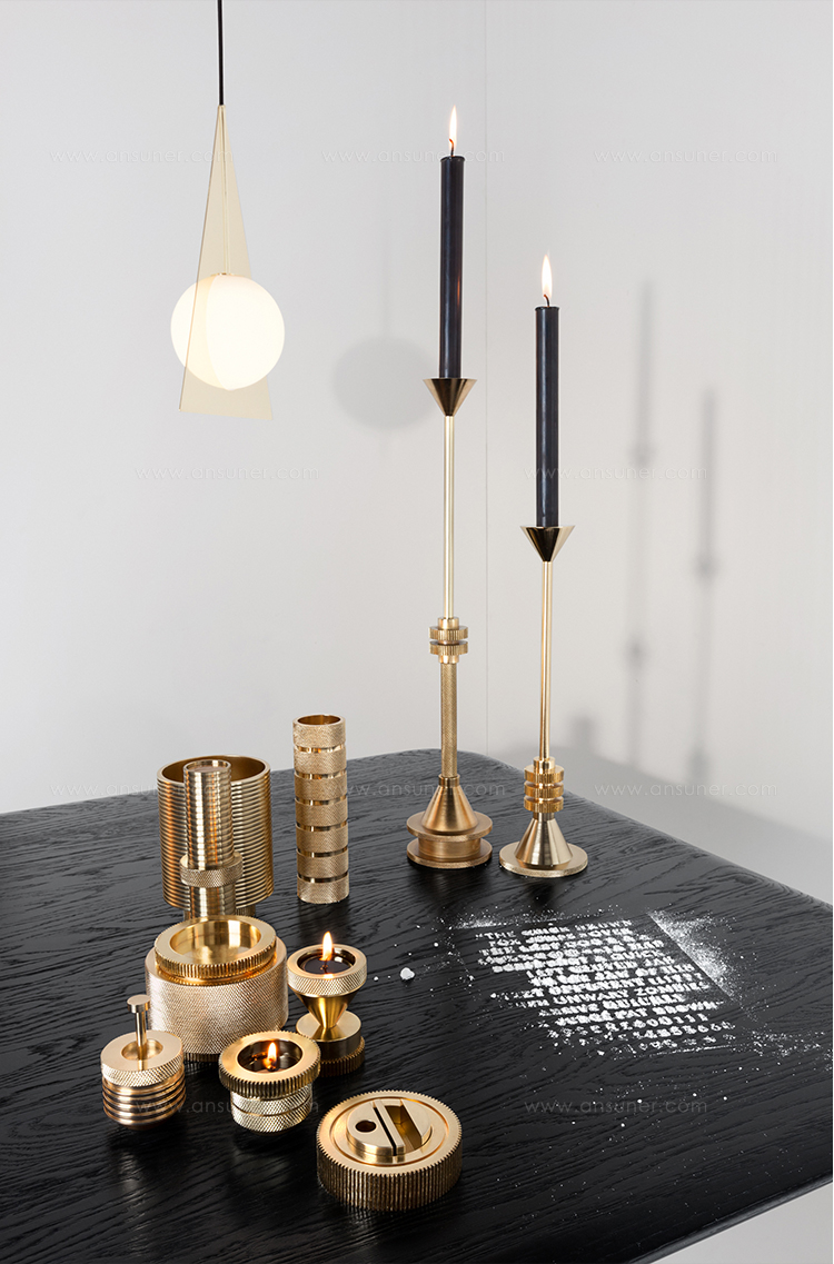 实心铝质生料块和管材在车床上进行加工,使用传统的精密机床进行切削和滚花。然后进行抛光,镀铜和抛光,最后用漆完成。标志深深地刻在底座上。