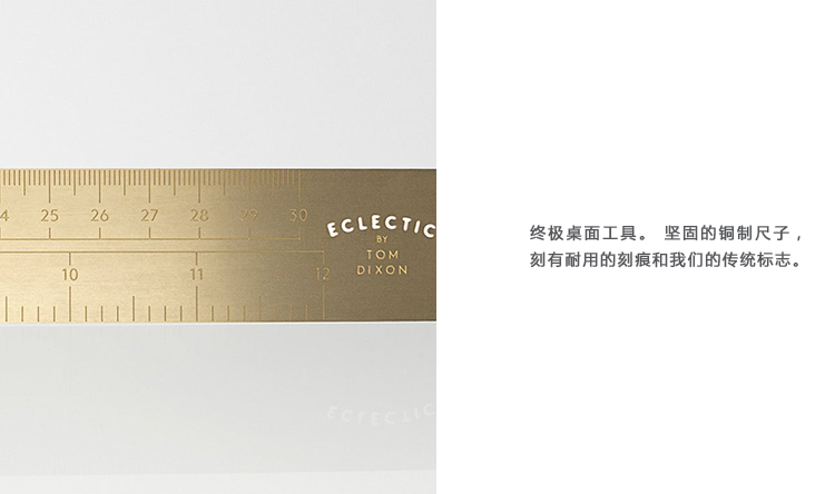 终极桌面工具。坚固的铜制尺子,刻有耐用的刻痕和我们的传统标志。