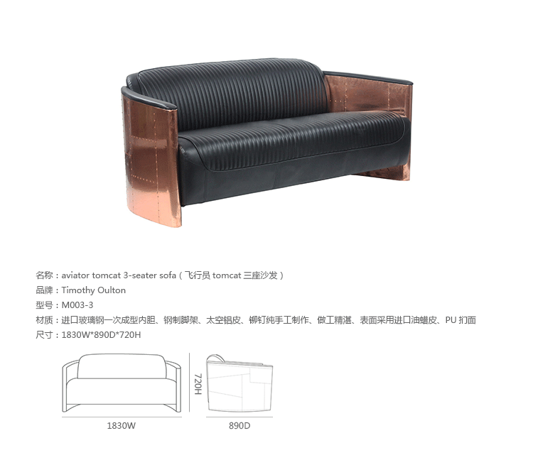 创意家具 - 坐具|沙发|办公家具|设计师家具|飞行员Tomcat三座沙发