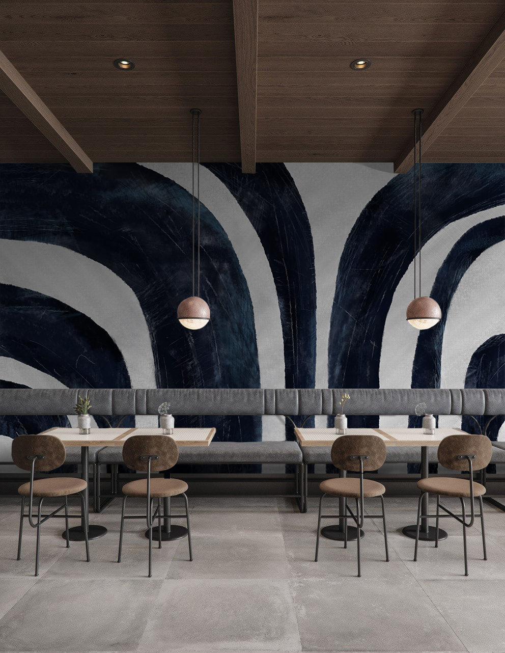 空间几何系列以点线面的构成作为创作主题,利用不同的构成方式,创造多样化的视觉效果,我们放弃了具体的内容和情节,突出运用这些纯粹的绘画语言来表现艺术形式的纯粹美;点、线、面和构成手法,就像是大厦的基石一样,看起来毫不起眼,但力量却无比强大,它是我们不断探索的源泉和情感表达的桥梁