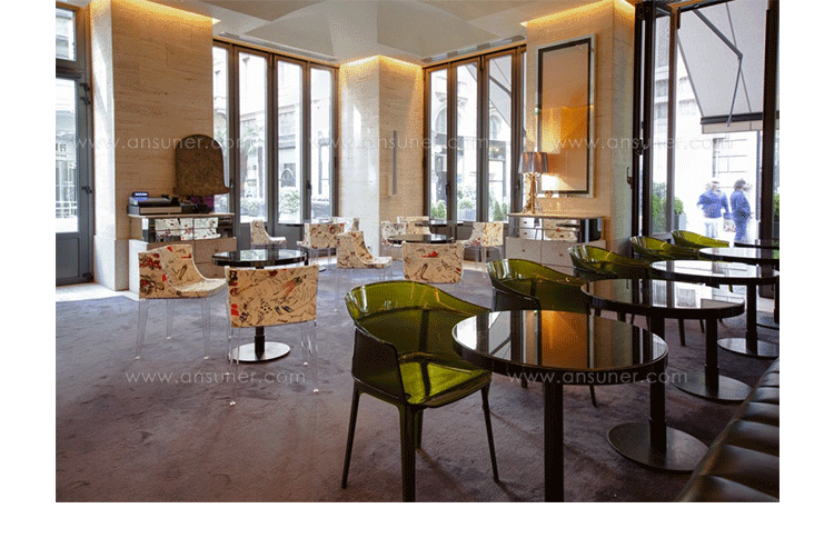 Papyrus Chair(纸莎草椅)是由Ronan & Erwan Bouroullec法国兄弟设计组合于今年为Kartell公司设计,并且在本次的米兰家具展中进行了展出。该设计的灵感来自于一把结构鲜明的古老座椅Linear,座椅本身非常舒适且重量很轻。其共有透明、黄、绿、紫、烟灰、棕、蓝和红八种颜色。这把椅子结合半透明的脚架,脚架“打磨”纤细的卵石状颗粒,并延伸至整个靠背的外轮廓,线条柔软和舒适。和整个结构都是透光的。因惊喜的做工和颜色的运用,使其非常吸引人。