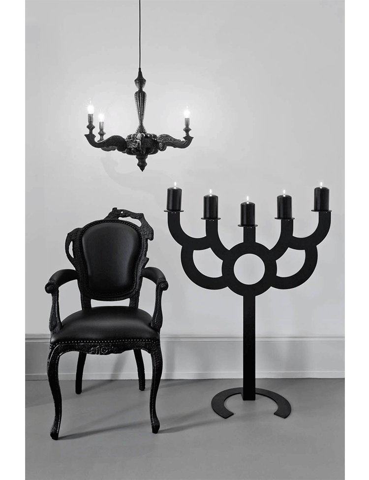 "Every Smoke Chandelier by Moooi is a unique piece that possesses the unique surface structure of burned wood. Since these exceptional lamps consist of just that: burned wood which has been treated with epoxide resin and will therefore remain protected and durable. This is the reason why an effect emerges that is similar to amber-covered objects that can be admired for a long time. The charisma of the burned wood offers an unmistakable aura to the room with this special piece.The unfinished expression of the Smoke Chandelier offers the finishing touch to the whole image. Those that are in the same room as this design piece by Moooi, won’t ignore it."