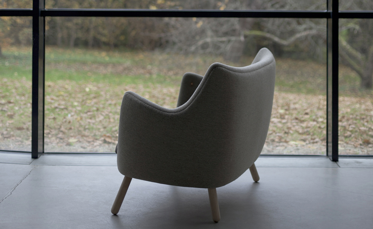 诗人沙发(1941)设计于位于夏洛滕隆哥本哈根北部的农村地区。设计师Finn juhl作为一个真正的享乐主义者,诗人沙发本来是他自用的。他设计的家具非常舒适,使用的工艺传统并且显示材料的价值。
