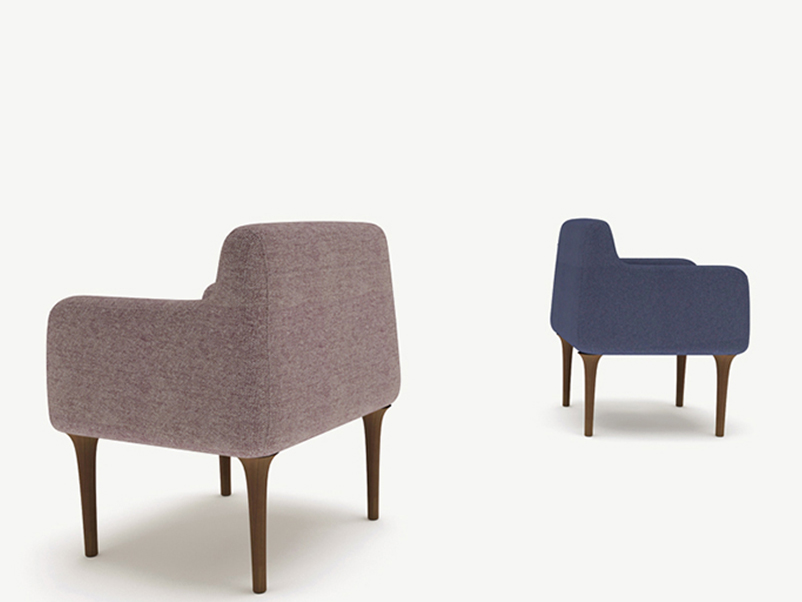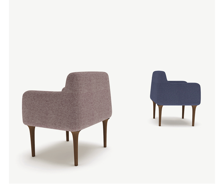 Etna lounge chair throw a real lounge feeling towards a dining chair. Maximized comfort, appealing and class in one original product. Fine solid wood legs and artisanal upholstery hand craft.