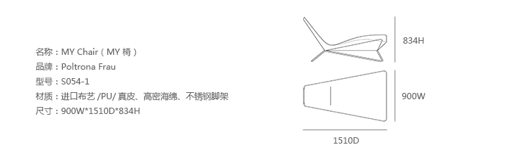 MY Chair(MY 椅)是由荷兰建筑师Ben van Berkel于2008年设计的,并且在2008科隆Orgatec展中进行了展出。该座椅是利用单一与多样设计而成,倾斜、围绕及笔直部位的相互连接,强烈颜色差异给予座椅的动感,使得其从任何角度观看都能给人以深刻印象。Mychair椅座身采用海绵进行填充,表面包覆4款纺织或皮革面料,其底座则采用铬钢制成。