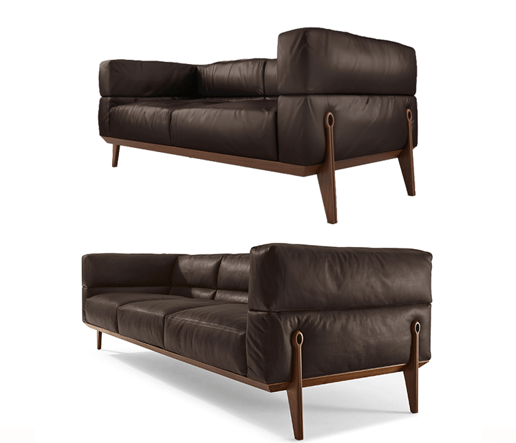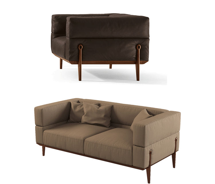 扶手椅和沙发在异形钢底架画上黑色的颜色,覆盖着坚实的核桃卡纳莱托木(fin.11)和杨树胶合板的扶手。 脚和侧翼在固体核桃卡纳莱托木(fin.11)或在液态金属青铜或钛版本。
