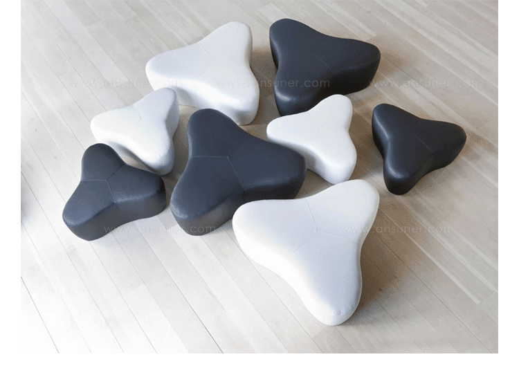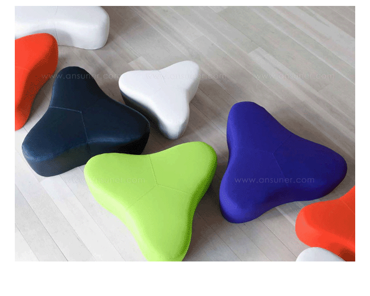 Chat Pouf(聊天墩)是日本著名的工业设计师Hiromichi Konno的作品,造型是立体的三角星形,线条优美流畅。这个坐垫凳适合于各种各样的环境中和不同的使用方式。颜色吸引人,自然,简约,简约。Chat Pouf质量很轻,便于移动和存储,采用高密度发泡海绵内胆、进口布艺或皮革(颜色多选)。