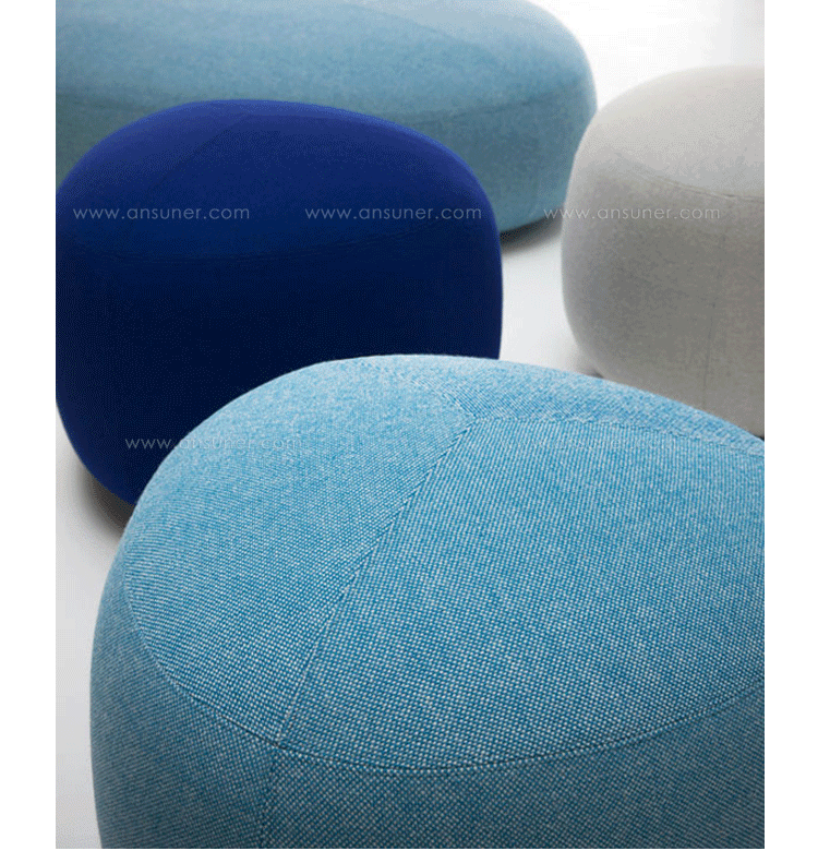 Kipu Pouf(Kipu 墩)的设计来着两个年轻的挪威设计师Torbjorn Anderssen和Espen Voll,灵感来自自然元素,被河水打磨的光滑鹅卵石,这就产生了三角形装卵石样的Kipu 墩。制作采用防霉实木框架、玻璃钢内胆、高密度海绵、高级布艺或皮革(颜色多选),软化所选择的颜色和面料,缝线细致的相交缝制,给人正式又休闲的感觉。其实用性非常广,可用于工作场所、非正式会议区、等候区、图书馆,也可以用在住宅项目,仿若舒适的"孤岛",可以不同高度、数量自由组合,即便不用来坐,单纯用来做艺术摆设都是非常高档的。